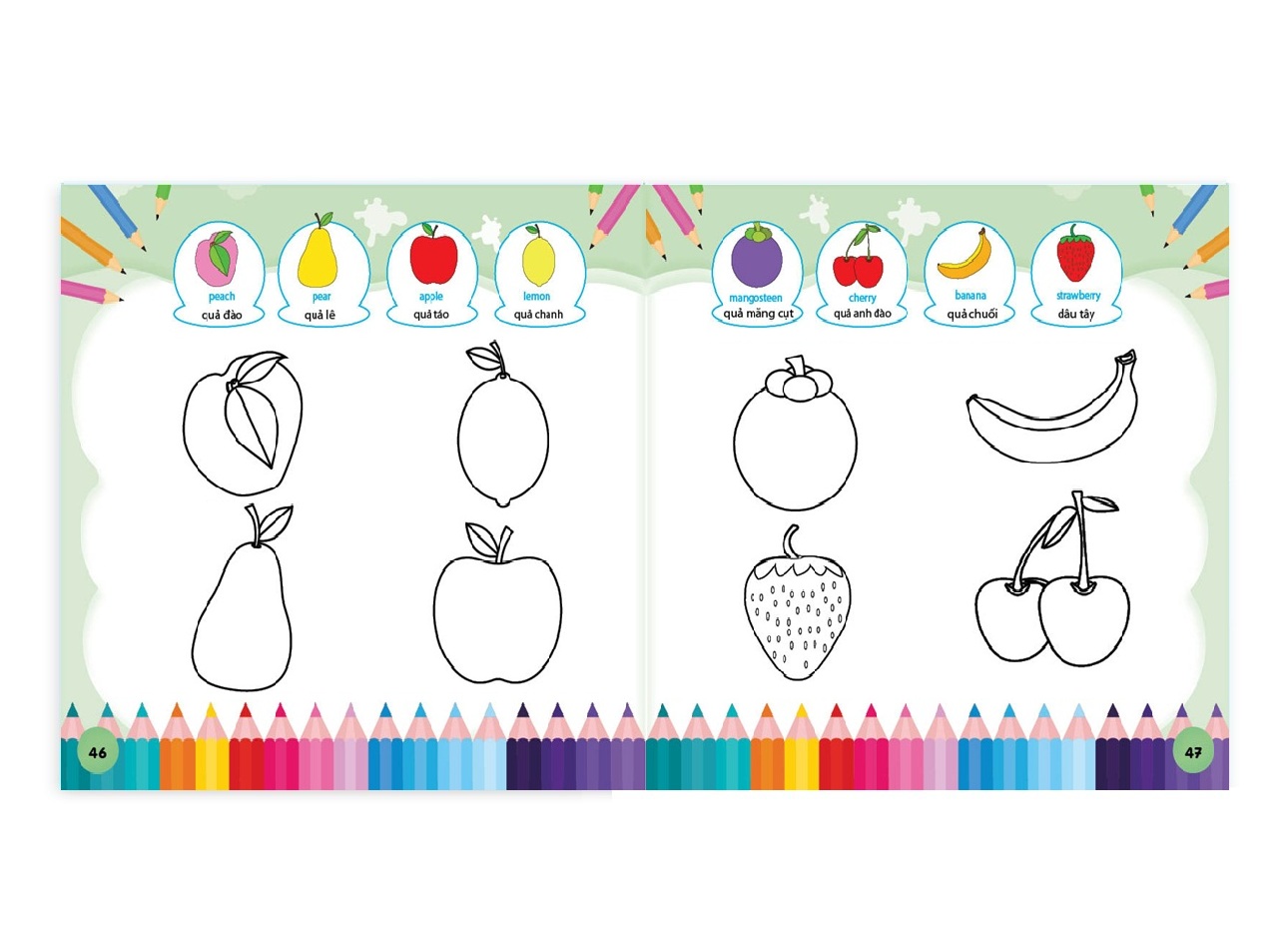- Cuốn sách tô màu với nhiều hình vẽ chủ đề khác nhau, gần gũi với cuộc sống xung quanh bé. Bé có thể thỏa sức phối màu sắc tạo những bức tranh sinh động