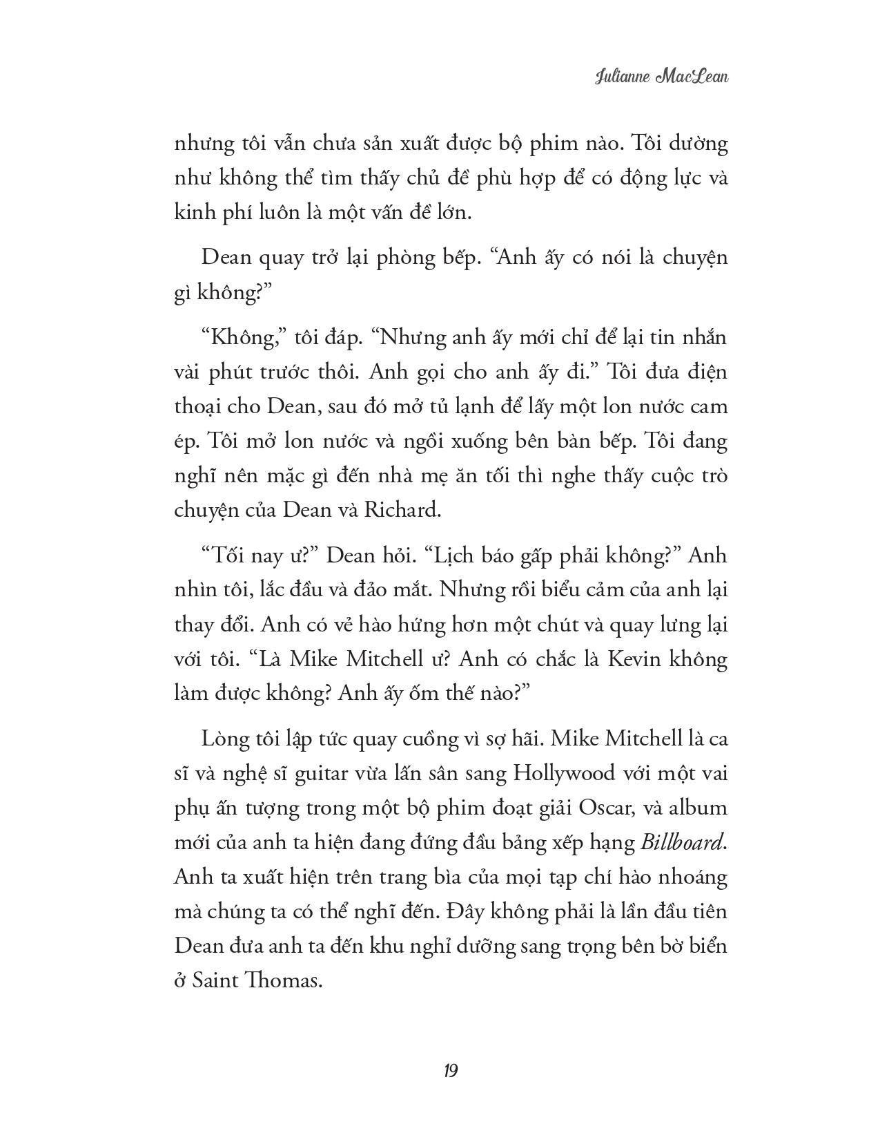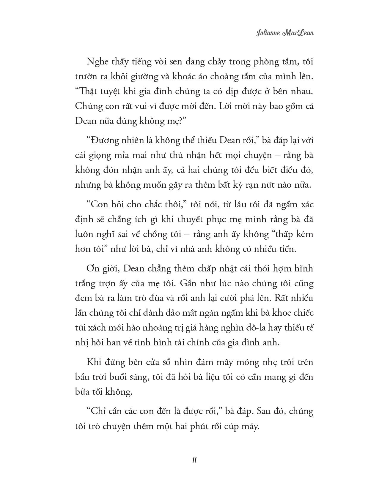 Julianne MacLean là tác giả có sách bán chạy nhất của USA Today với hơn 30 tiểu thuyết, trong đó có bộ sách nổi tiếng Color of Heaven. Độc giả mô tả những cuốn sách của cô ấy là “ngoạn mục”, “có hồn” và “nâng đỡ tinh thần”. MacLean đã bốn lần lọt vào vòng chung kết của giải thưởng RITA dành cho Nhà văn Lãng mạn Hoa Kỳ và đã giành được nhiều giải thưởng, bao gồm Booksellers’ Best Award và Reviewers’ Choice Award của Romantic Times. Tiểu thuyết của cô đã bán được hàng triệu bản trên toàn thế giới và đã được dịch ra hơn 10 loại ngôn ngữ khác nhau.