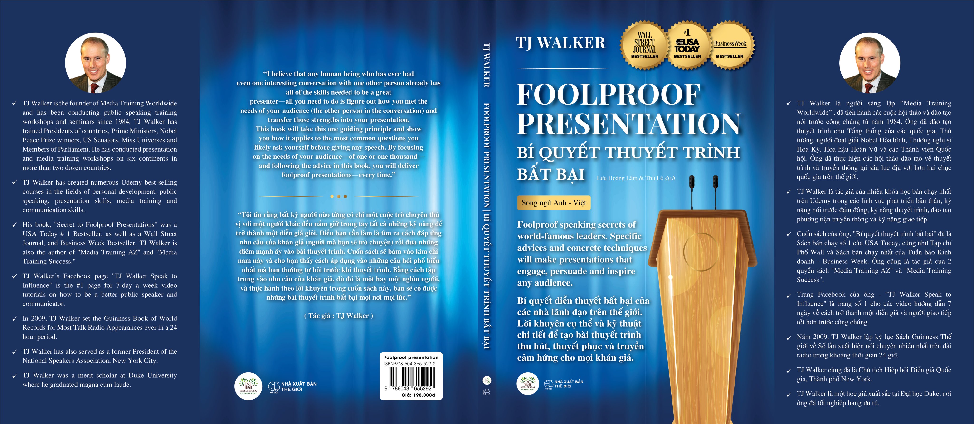 Sách - Bí Quyết Thuyết Trình Bất Bại   TJ Walker là một bậc thầy về thuyết trình. Ông không những là diễn giả mà còn là người dẫn chương trình, sản xuất chương trình truyền hình và tham gia đào tạo thuyết trình. Ông cũng sở hữu một công ty chuyên đào tạo về kỹ năng phát biểu trước đám đông.    Trong cuốn sách thuyết trình bất bại, ông sẽ hướng dẫn bạn cách để thuyết trình một cách trôi chảy và mang lại hiệu quả cả cho bản thân và người nghe. Thuyết trình là kỹ năng mà bất kỳ ai cũng có thể học tập và rèn luyện. Có thể các tổng thống Mỹ giỏi và tài năng ở những lĩnh vực riêng, hay các nhà khoa học cũng vậy. Nhưng họ đều có chung một kỹ năng cần rèn luyện là thuyết trình. Một bài thuyết trình tốt sẽ giúp người nói truyền tải được thông tin và người nghe lĩnh hội được những thông tin quan trọng.   Hãy bỏ qua tất cả những gì bạn biết về việc thuyết trình. Chỉ với 6 vấn đề đơn giản, TJ Walker sẽ giúp bạn trở thành một tay thuyết trình xuất sắc trong hàng ngũ những người thuyết trình siêu hạng như Bill Clinton, Churchill hay Tony Robbins.   Sách song ngữ Anh – Việt giúp bạn rèn luyện cả việc thuyết trình bằng cả hai thứ tiếng.   Thông tin tác giả:   TJ Walker là Giám đốc điều hành của Tập đoàn TJWalker đồng thời là người sáng lập công ty Media Training Worldwide. Ông đã tham gia đào tạo về kỹ năng diễn thuyết, thuyết trình và làm việc với giới truyền thông qua nhiều nỗ lực khác nhau. Một số thành tựu chính có thể kể đến:   Diễn giả – TJ đã thực hiện hơn một trăm bài diễn thuyết và các buổi đào tạo mỗi năm về chủ đề quản lý, giao tiếp, truyền thông và kỹ năng thuyết trình. Bài diễn thuyết nổi tiếng nhất của ông có tên: “Vị thế nổi bật: Bí quyết diễn thuyết của các nhà lãnh đạo trên thế giới.   Người dẫn chương trình và nhà sản xuất truyền hình – TJ là người dẫn chương trình của hai chương trình truyền hình phát sóng hàng ngày trên kênh The Speaking Channel (www. ). Chương trình có tên “Vị thế nổi bật: Bí quyết diễn thuyết của các nhà lãnh đạo trên thế giới” bao gồm các đoạn ghi hình ngắn về những cái tên nổi tiếng như Franklin Roosevelt và Ronald Reagan. Chương trình mang tên “Trò chuyện cùng TJ Walker” mang tới nhiều lời khuyên súc tích và thực tế trong mọi khía cạnh của kỹ năng thuyết trình  trước đám đông và đối mặt với truyền thông.   Mã hàng              9786043655292 Dự Kiến Có Hàng               17/12/2022 Tên Nhà Cung Cấp           Alpha Books Tác giả  Tj Walker Người Dịch          Nhiều Dịch Giả NXB       Thế Giới Năm XB 2022 Trọng lượng (gr)               250 Kích Thước Bao Bì            24 x 16 cm Số trang               216 Hình thức            Bìa Mềm Sản phẩm bán chạy nhất               Top 100 sản phẩm Kỹ năng sống bán chạy của tháng