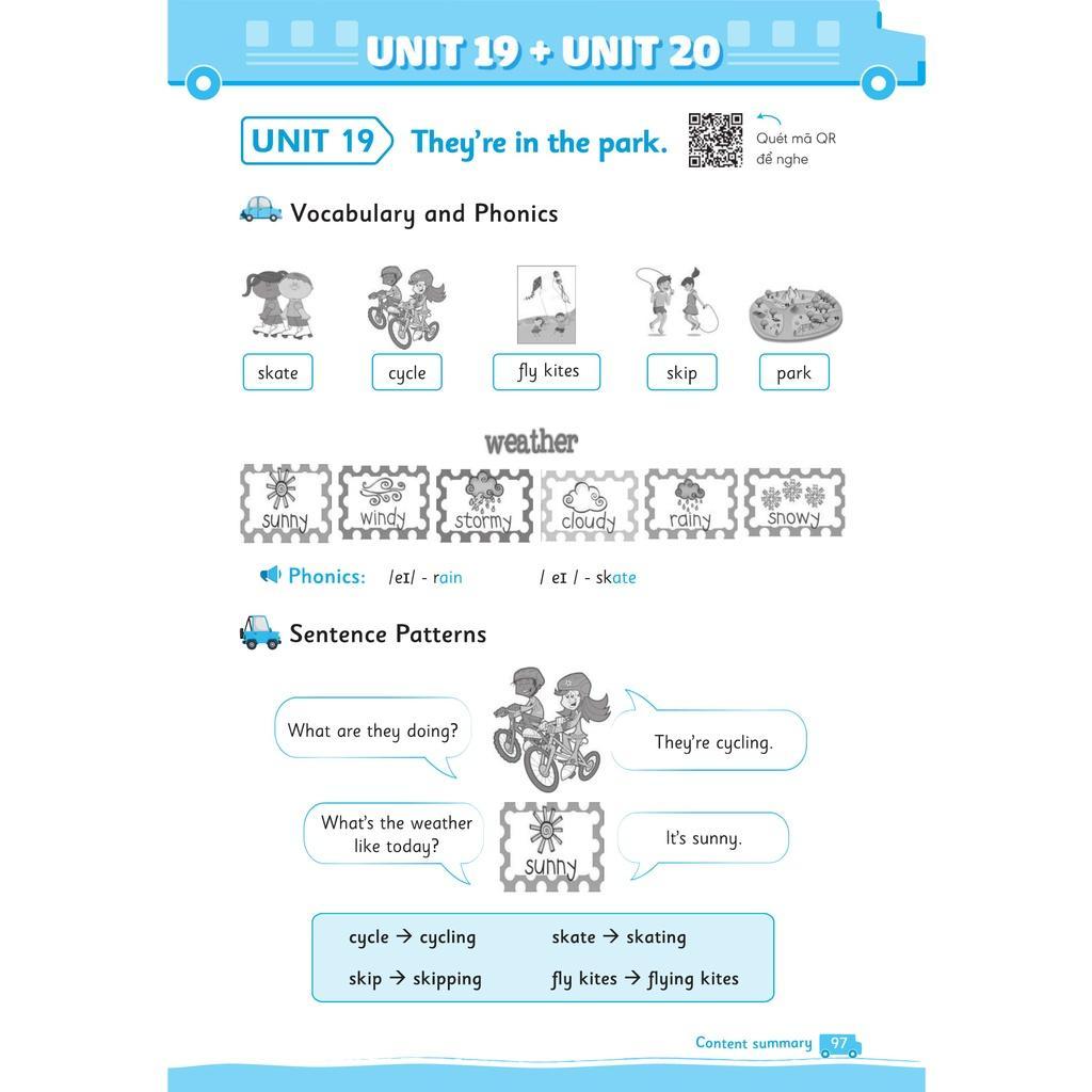 Với bộ sách bố mẹ sẽ giúp bé tiến bộ từng ngày, tự tin với khả năng ngôn ngữ của mình khi ôn luyện Tiếng Anh bởi các bài tập về 4 kỹ năng: Nghe – Nói – Đọc – Viết được liên kết với nhau theo logic của bài học.