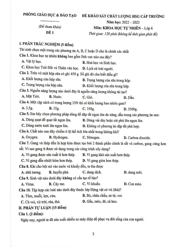 Bộ 30 Đề Thi Thử Học Sinh Giỏi Khoa Học Tự Nhiên 6 (Theo Chương Trình Giáo Dục Phổ Thông Mới) Năm học 2022-2023 là năm học đầu tiên áp dụng giảng dạy môn Khoa