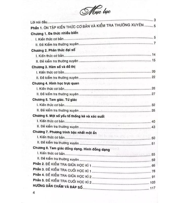 Mô Tả Sản Phẩm Chương 1: Số hữu tỉ Chương 2: Số thực Chương 3: Góc và đường thẳng song song Chương 4: Tam giác bằng nhau Chương 5: Thu thập và biểu diễn dữ