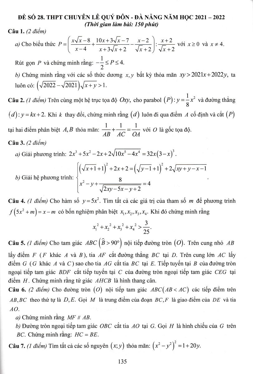 Phần I. Một số đề ôn luyện. Phần này gồm 10 đề thi được biên soạn công phu, bám sát định dạng đề thi vào lớp 10 THPT chuyên môn Toán của các tỉnh, thành phố và hướng dẫn giải chi tiết.