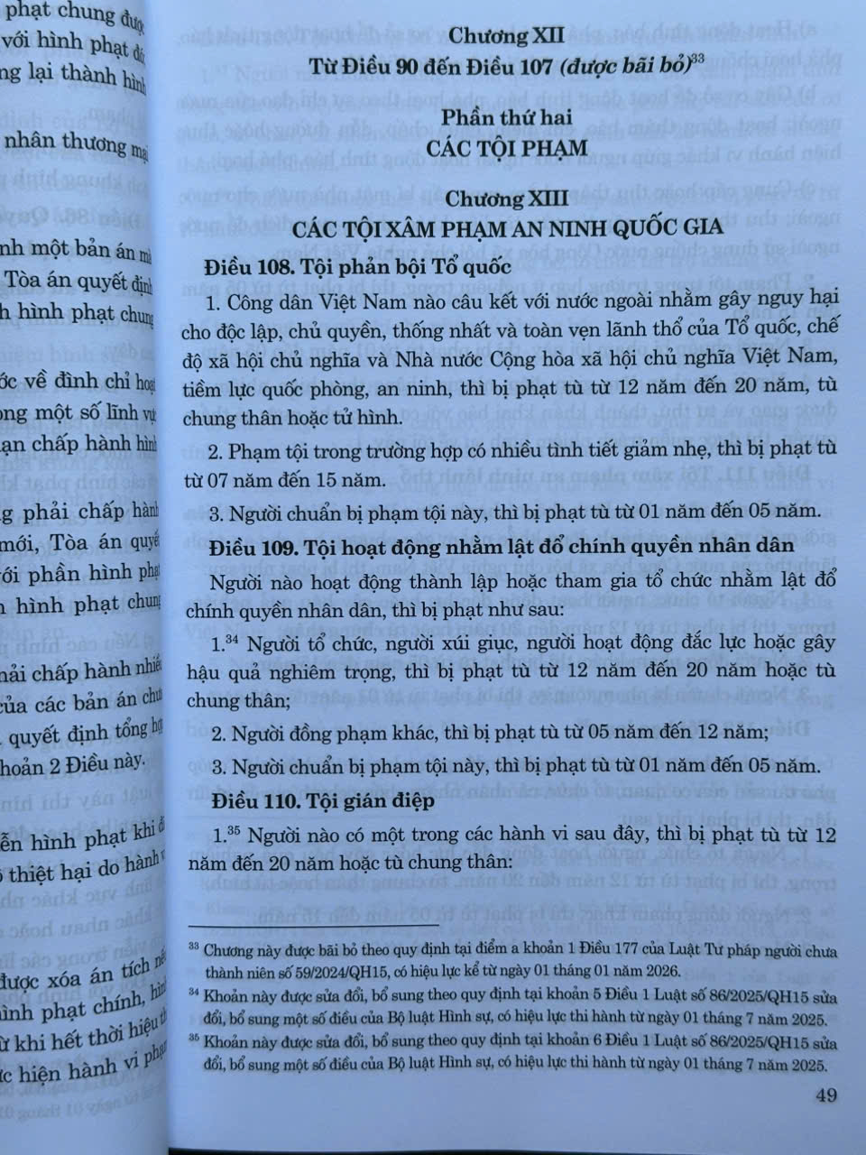 - Luật số 86/2025/QH15 sửa đổi, bổ sung một số điều của Bộ luật Hình sự, có hiệu lực thi hành từ ngày 01 tháng 7 năm 2025. Phần BỘ LUẬT TỐ TỤNG HÌNH SỰ trong cuốn sách này đã hợp nhất các Luật sửa đổi nên tiện tra cứu và áp dụng ạ: