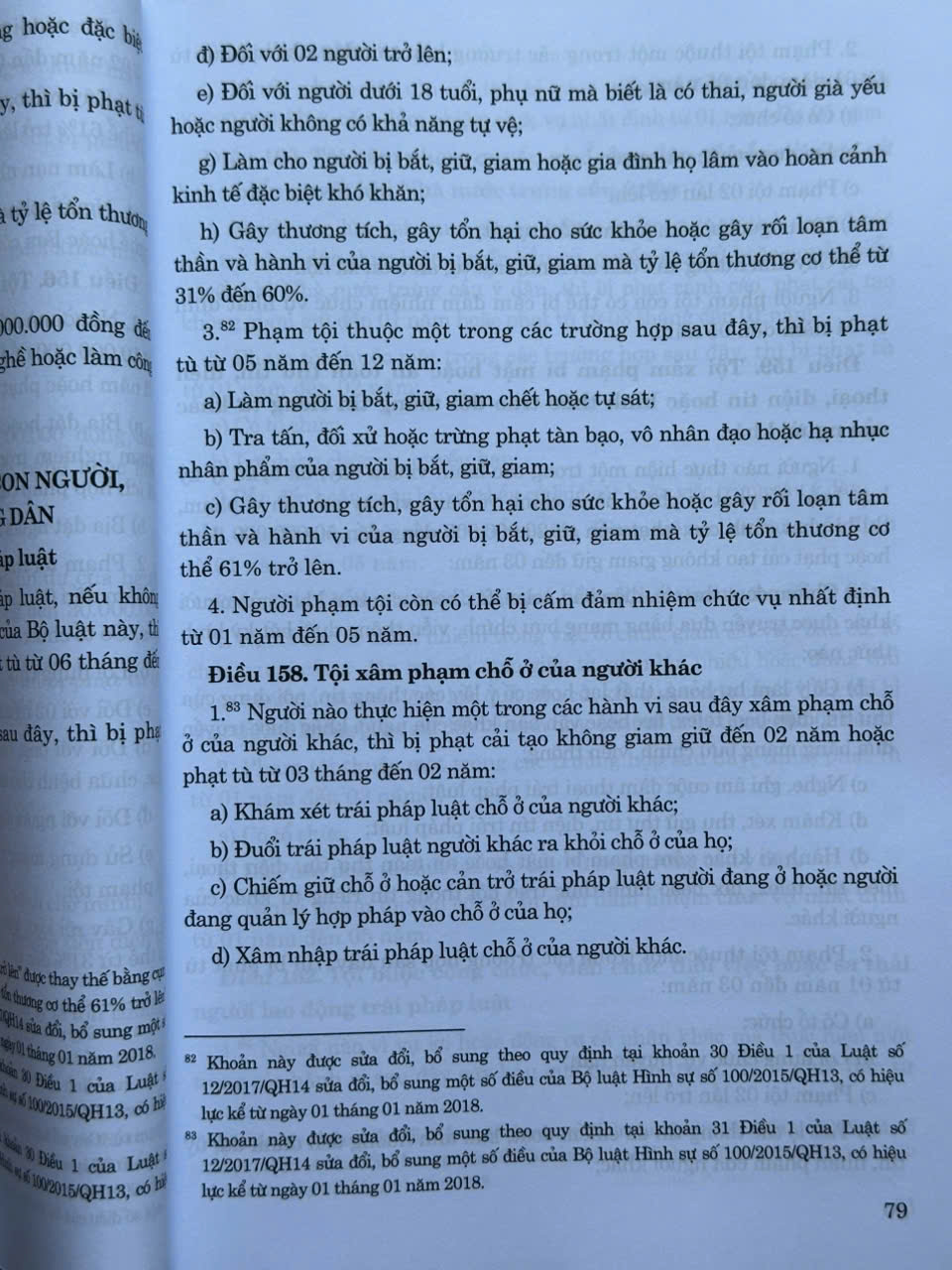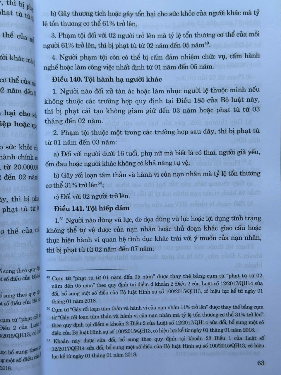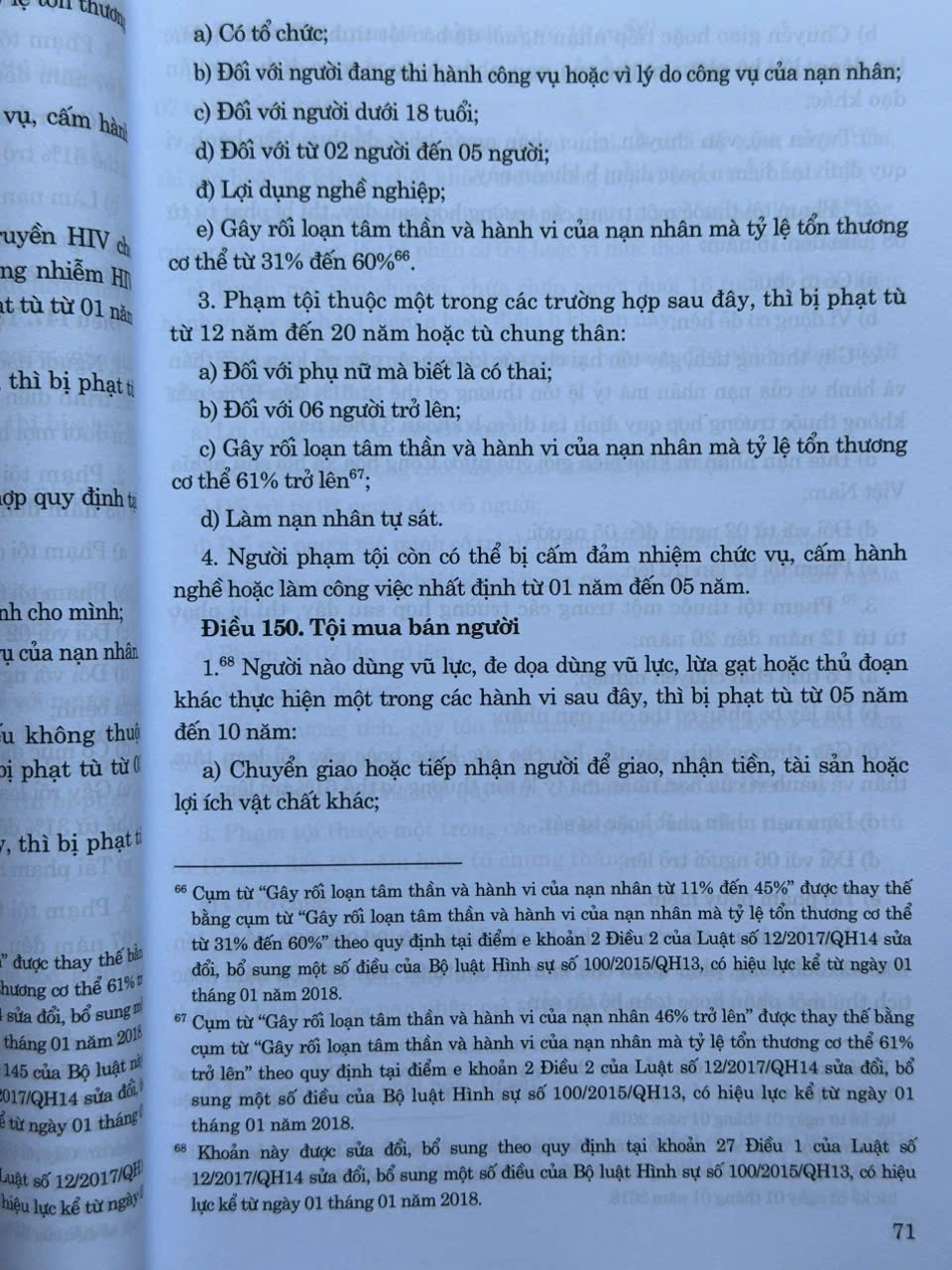 - Luật số 12/2017/QH14 ngày 20 tháng 6 năm 2017 của Quốc hội sửa đổi, bổ sung một số điều của Bộ luật Hình sự số 100/2015/QH13, có hiệu lực kể từ ngày 01 tháng 01 năm 2018;