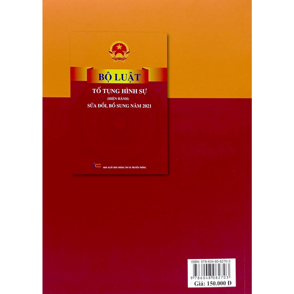 Sách Bộ Luật Tố Tụng Hình Sự - Nước CHXHCNVN ( Sửa Đổi Bổ Sung Năm 2021) Nhà xuất bản: NXB Lao Động Nhà cung cấp : Ndbooks Tác giả: Quốc Hội Năm xuất