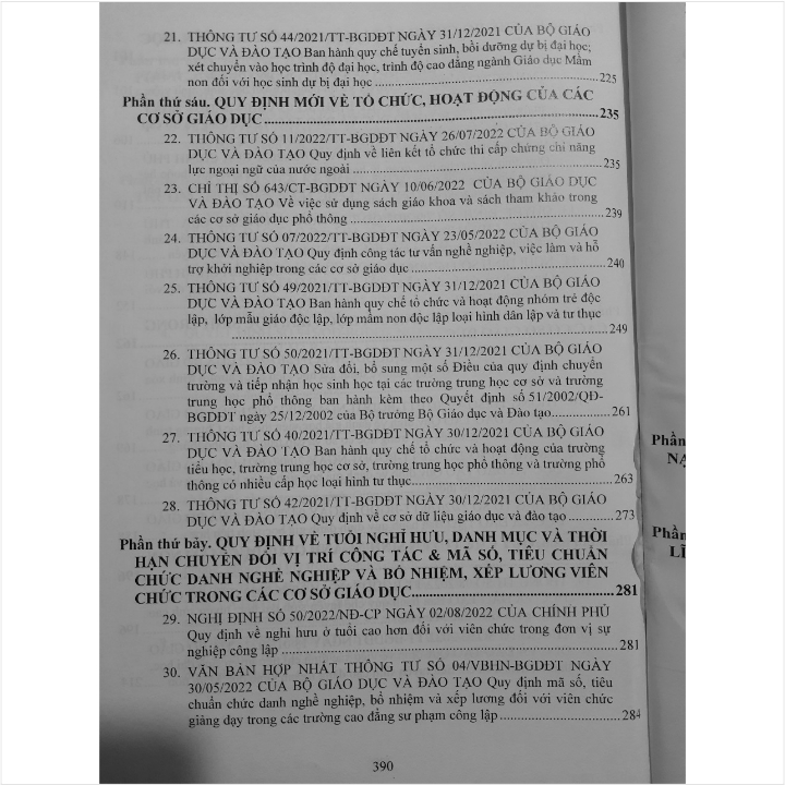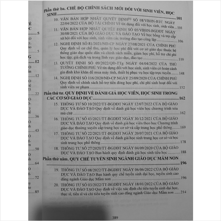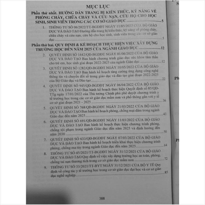 - Toàn bộ sách bìa mềm khổ lớn 20 x 28 cm phân phối bởi Nhà sách Nam Việt đều được bọc sách Plastic MIỄN PHÍ và xuất hóa đơn điện tử đầy đủ, nhanh chóng. …/… Trong sách đã cập nhật các Nghị định và Thông tư mới như sau: - Thông tư số 06/2022/TT-BGDĐT ngày 11/05/2022 Hướng dẫn trang bị kiến thức, kỹ năng về phòng cháy, chữa cháy và cứu nạn, cứu hộ cho học sinh, sinh viên trong các cơ sở giáo dục; - Quyết định số 05/2022/QĐ-TTg ngày 23/03/2022 sửa đổi, bổ sung một số điều của Quyết định số 157/2007/QĐ-TTg ngày 27/09/2007 về tín dụng đối với học sinh, sinh viên; - Chỉ thị số 643/CT-BGDĐT ngày 10/06/2022 về việc sử dụng sách giáo khoa và sách tham khảo trong các cơ sở giáo dục phổ thông… Nhằm phổ biến đến Quý Cơ quan, Đơn vị trường học và Quý khách hàng thân thiết nắm bắt kịp thời những quy định mới nêu trên. Nhà sách Nam Việt xin trân trọng giới thiệu cuốn sách: CẨM NANG CHO LÃNH ĐẠO TRƯỜNG HỌC & CHẾ ĐỘ, CHÍNH SÁCH DÀNH CHO HỌC SINH, SINH VIÊN - KỸ NĂNG PHÒNG CHÁY, CHỮA CHÁY, CỨU NẠN, CỨU HỘ, ĐẢM BẢO AN TOÀN, TRÁNH TAI NẠN, THƯƠNG TÍCH TRONG TRƯỜNG HỌC Cuốn sách gồm các phần chính sau: Phần thứ nhất. HƯỚNG DẪN TRANG BỊ KIẾN THỨC, KỸ NĂNG VỀ PHÒNG CHÁY, CHỮA CHÁY VÀ CỨU NẠN, CỨU HỘ CHO HỌC SINH, SINH VIÊN TRONG CÁC CƠ SỞ GIÁO DỤC Phần thứ hai. QUY ĐỊNH VÀ KẾ HOẠCH THỰC HIỆN VIỆC XÂY DỰNG TRƯỜNG HỌC ĐẾN NĂM 2025 CỦA NGÀNH GIÁO DỤC Phần thứ ba. CHẾ ĐỘ CHÍNH SÁCH MỚI ĐỐI VỚI HỌC SINH, SINH VIÊN Phần thứ tư. QUY ĐỊNH MỚI VỀ VIỆC ĐÁNH GIÁ HỌC VIÊN, HỌC SINH TRONG CÁC CƠ SỞ GIÁO DỤC Phần thứ năm. QUY CHẾ TUYỂN SINH NGÀNH GIÁO DỤC MẦM NON Phần thứ sáu. QUY ĐỊNH MỚI VỀ TỔ CHỨC, HOẠT ĐỘNG CỦA CÁC CƠ SỞ GIÁO DỤC Phần thứ bảy. QUY ĐỊNH VỀ TUỔI NGHỈ HƯU, DANH MỤC VÀ THỜI HẠN CHUYỂN ĐỔI VỊ TRÍ CÔNG TÁC & MÃ SỐ, TIÊU CHUẨN CHỨC DANH NGHỀ NGHIỆP VÀ BỔ NHIỆM, XẾP LƯƠNG VIÊN CHỨC TRONG CÁC CƠ SỞ GIÁO DỤC Phần thứ tám. VĂN BẢN MỚI VỀ TIẾP CÔNG DÂN, GIẢI QUYẾT KHIẾU NẠI, GIẢI QUYẾT TỐ CÁO TRONG TRƯỜNG HỌC Phần thứ chín. QUY ĐỊNH XỬ PHẠT VI PHẠM HÀNH CHÍNH TRONG LĨNH VỰC GIÁO DỤC VÀ ĐÀO TẠO Cảm ơn các bạn đã ghé thăm shop Nhà sách Nam Việt ! Sách Cẩm Nang Dành Cho Lãnh Đạo Trường Học - Chế Độ, Chính Sách Dành Cho Học Sinh, Sinh Viên - Kỹ Năng Phòng Cháy Chữa Cháy, Cứu Nạn Cứu Hộ, Đảm Bảo An Toàn, Tránh Tai Nạn, Thương Tích Trong Trường Học Sách Cẩm Nang Dành Cho Lãnh Đạo Trường Học - Chế Độ, Chính Sách Dành Cho Học Sinh, Sinh Viên - Kỹ Năng Phòng Cháy Chữa Cháy, Cứu Nạn Cứu Hộ, Đảm Bảo An Toàn, Tránh Tai Nạn, Thương Tích Trong Trường Học
