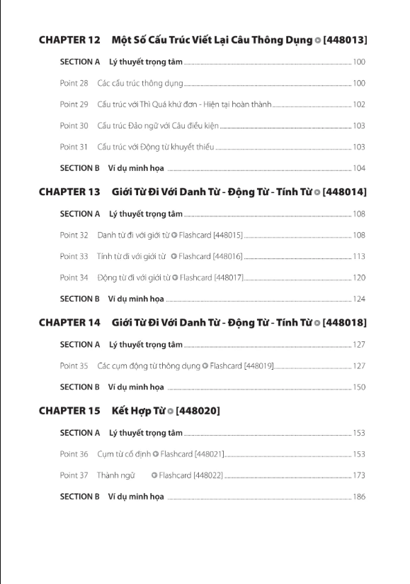 (2) PART 02 - Ngữ pháp trọng tâm và một số phạm trù nâng cao: Gồm 15 chủ điểm ngữ pháp trọng tâm và một số phạm trù nâng cao trong chương trình học, với hệ thống lý thuyết - ví dụ minh họa - các dạng bài tập chuẩn format đề thi