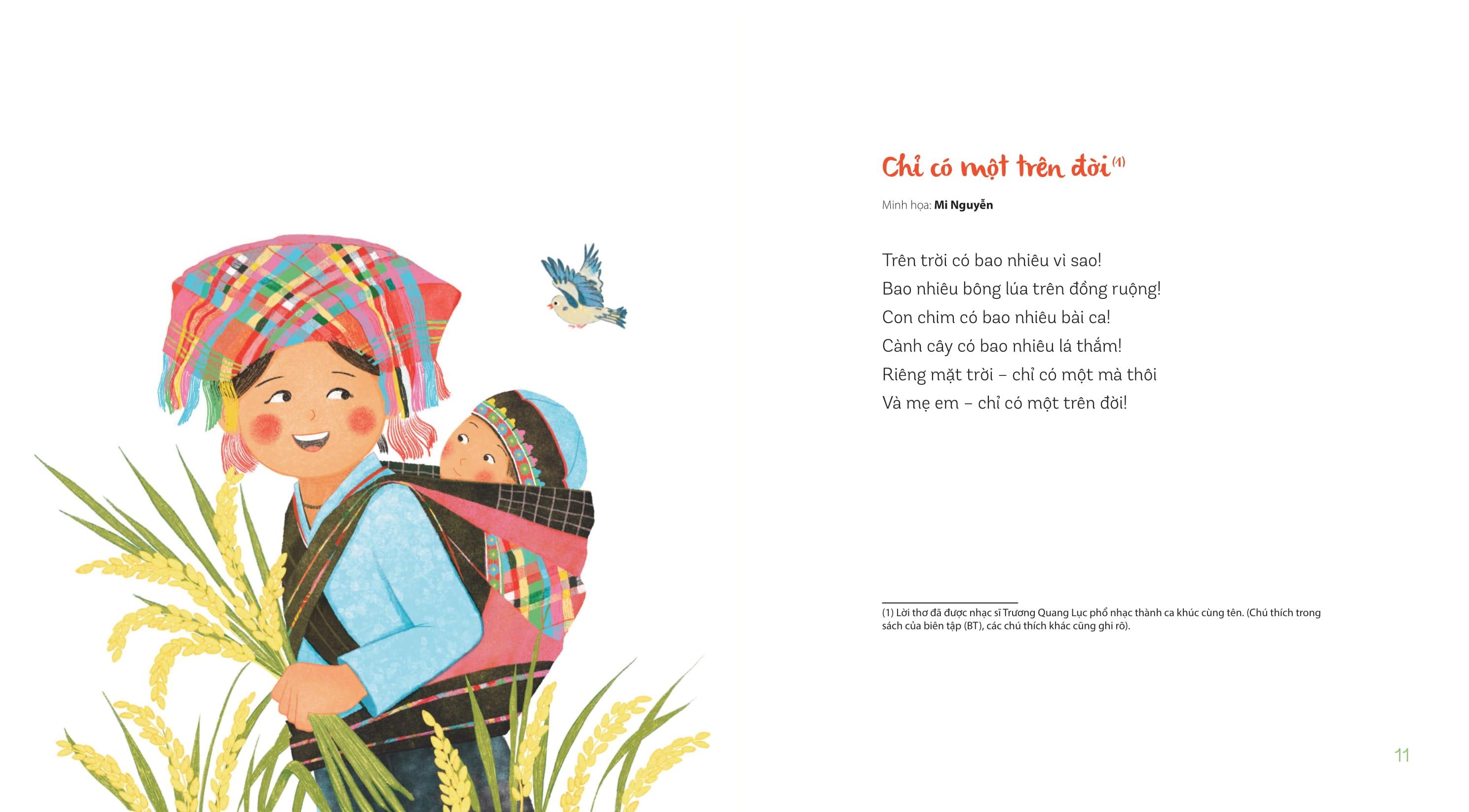 Những vần thơ dễ thương, hồn hậu, có bài tựa như khúc đồng dao dân gian nhưng lại là sáng tác của tác giả nước ngoài, từ “lâu rồi, trước kia” đã được dịch giả Thúy Toàn dịch sang tiếng Việt rất truyền cảm. Món quà ngôn ngữ với âm điệu trong trẻo của tuổi thơ ngây, biết ơn và chân thành: