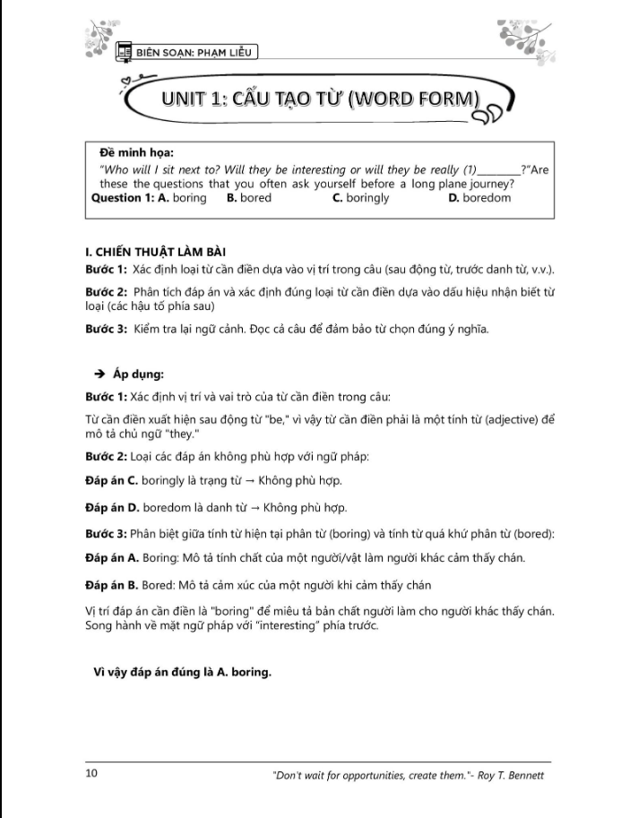 - Củng cố kiến thức cốt lõi: Các bài học trong sách được thiết kế để học sinh nắm chắc các dạng ngữ pháp và từ vựng thường gặp, đồng thời cải thiện kỹ năng xử lý bài đọc hiểu và điền khuyết.