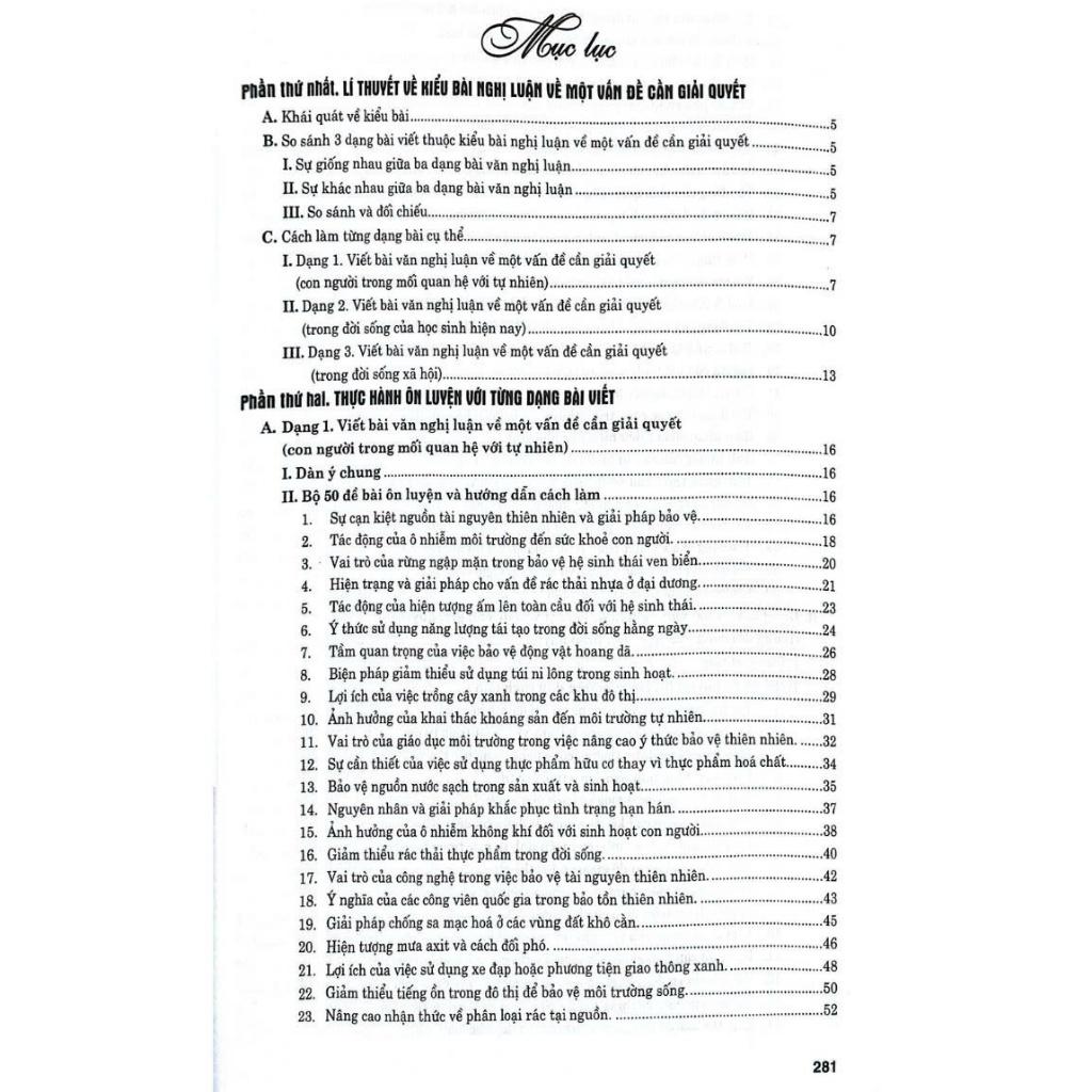 - Các Dạng Nghị Luận Xã Hội Ngữ Văn 9 (Dành Cho Học Sinh Lớp 9 Vào Lớp 10 Theo Cấu Trúc Đề Thi Năm 2025) Cuốn sách “CÁC DẠNG NGHỊ LUẬN XÃ HỘI NGỮ VĂN 9 - Dùng cho học sinh lớp 9 và ôn thi vào lớp 10 - Theo cấu trúc đề thi năm 2025” được biên soạn nhằm hỗ trợ quý thầy cô và các em học sinh trong quá trình dạy và học Ngữ văn 9, chuẩn bị cho kì thi vào lớp 10 THPT sắp tới. Với nội dung được biên soạn theo định hướng phát triển năng lực và phẩm chất của Chương trình GDPT mới, cuốn sách còn có thể giúp các em hệ thống hóa kiến thức các dạng bài nghị luận xã hội, cải thiện khả năng tư duy và lập luận logic. Nội dung cuốn sách tập trung vào các dạng bài nghị luận về một vấn đề cần giải quyết – là dạng bài viết trọng tâm của chương trình Ngữ văn 9, có thể được nhiều tỉnh thành sử dụng để ra đề thi vào lớp 10 THPT. Ngoài phần cung cấp lí thuyết, cuốn sách còn đưa ra hệ thống đề bài phong phú, có dàn ý chi tiết, giúp các em hiểu rõ cách thức xây dựng một bài văn nghị luận chặt chẽ, logic. Nội dung cuốn sách bao gồm: