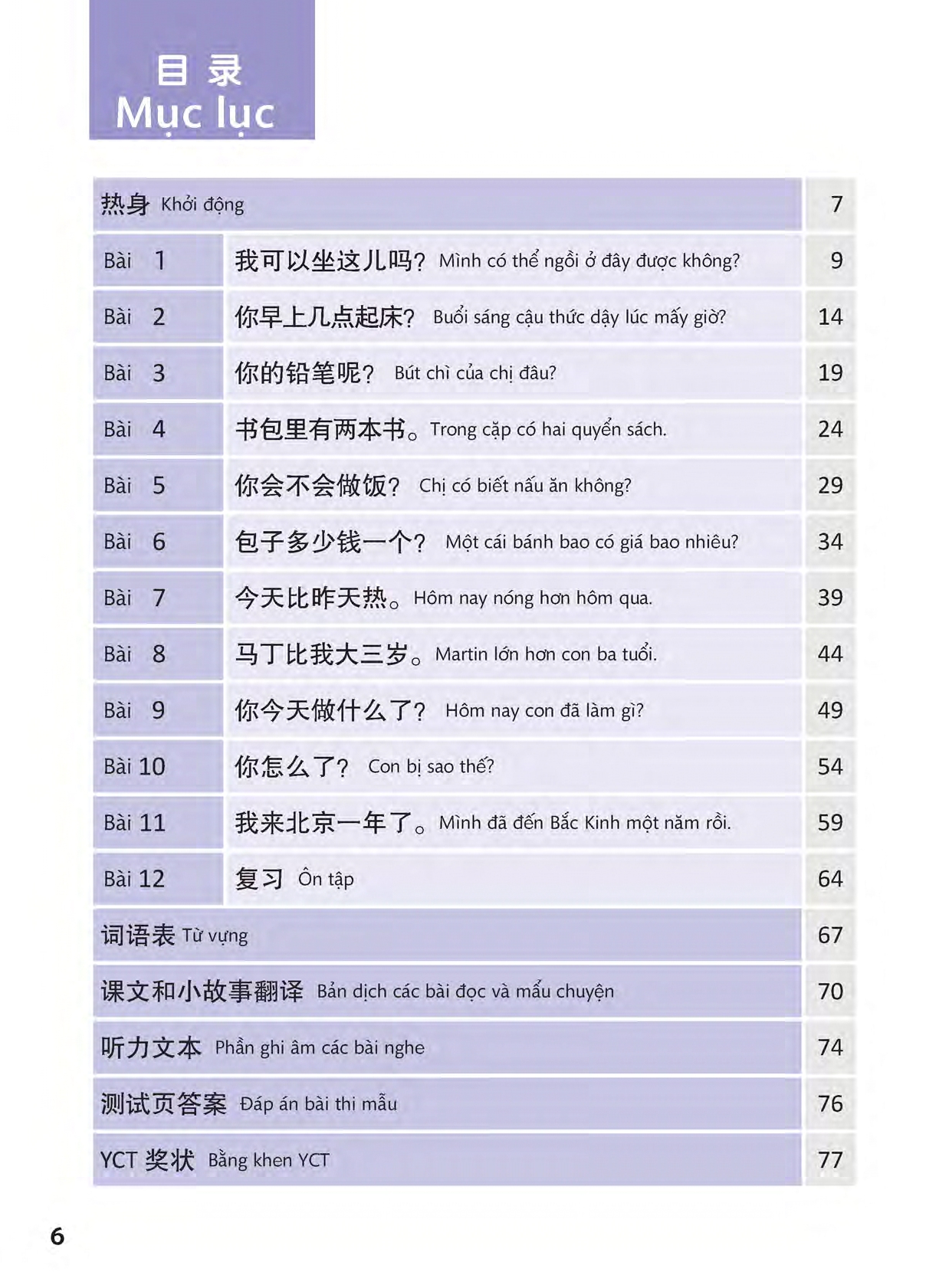 Nội dung sách: Sách YCT là sách tiếng hoa thiếu nhi bản quyền chuẩn mẫu chương trình dạy cho các bé từ vở lòng bằng những bài học đơn giản nhất.