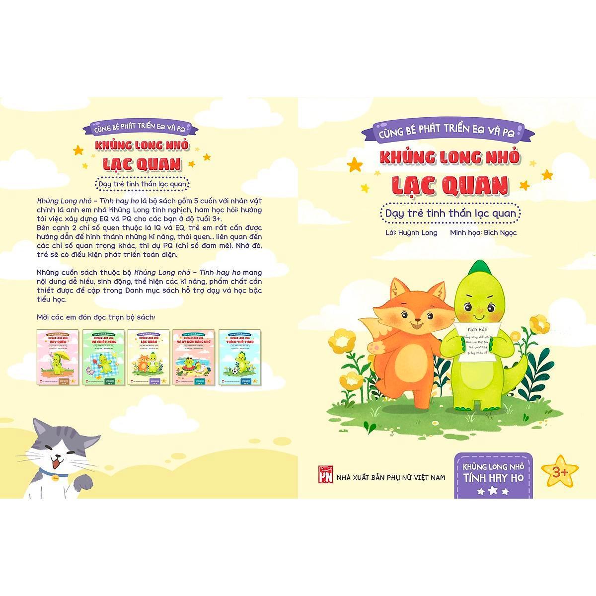 - Khủng Long nhỏ lạc quan – Dạy trẻ tinh thần lạc quan: Mã ISBN: 978-6-390-754-4; Khổ sách: 21x28.5, Số trang: 28 trang; Giá tiền: 49.000đ
