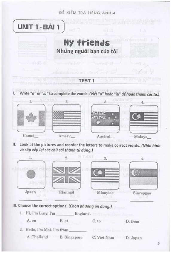 Bộ đề kiểm tra tiếng Anh lớp 4 Có đáp án