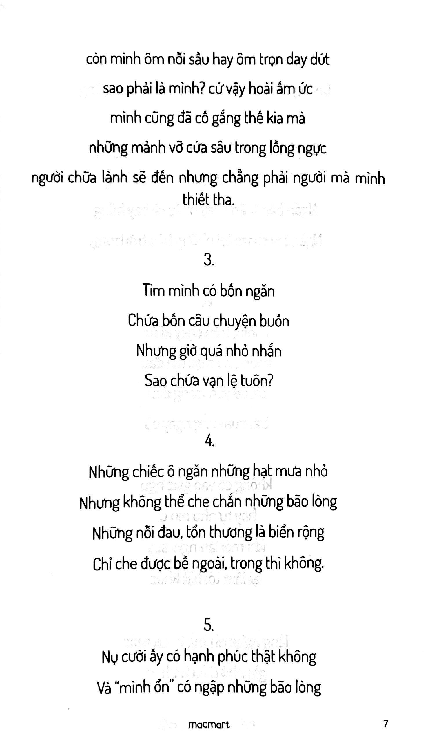 “Điểm rơi nơi đáy mắt” chứa đựng những lời thơ và câu văn đầy bất lực day dứt về một tuổi trẻ bị phủ bởi những vết xước mà cuộc sống này đem lại. Cuốn sách tựa sợi dây níu kéo bạn lại với thế giới này, tựa chiếc ôm ấm áp, đầy dịu dàng và thấu hiểu ôm lấy bạn nếu bạn đang: