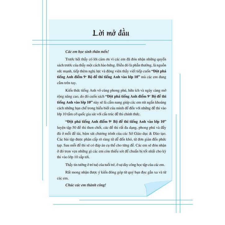 Đột phá tiếng Anh điểm 9+ (Bộ đề thi tiếng Anh vào lớp 10) - Có đáp án (tái bản 01)