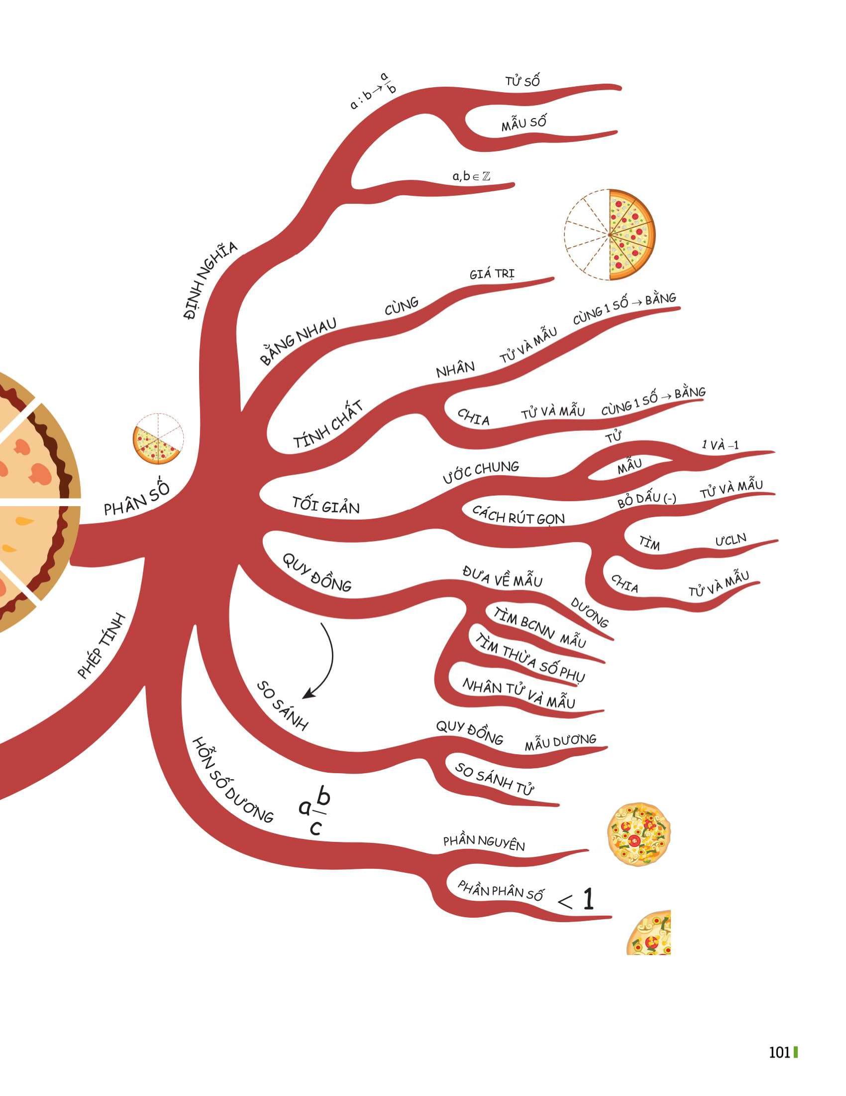 Sơ đồ tư duy trong sách không chỉ giúp hệ thống hóa kiến thức toán lớp 6 mà còn kích thích khả năng tư duy sáng tạo. Bạn sẽ dễ dàng nắm bắt và kết nối các kiến thức một cách rõ ràng và mạch lạc.