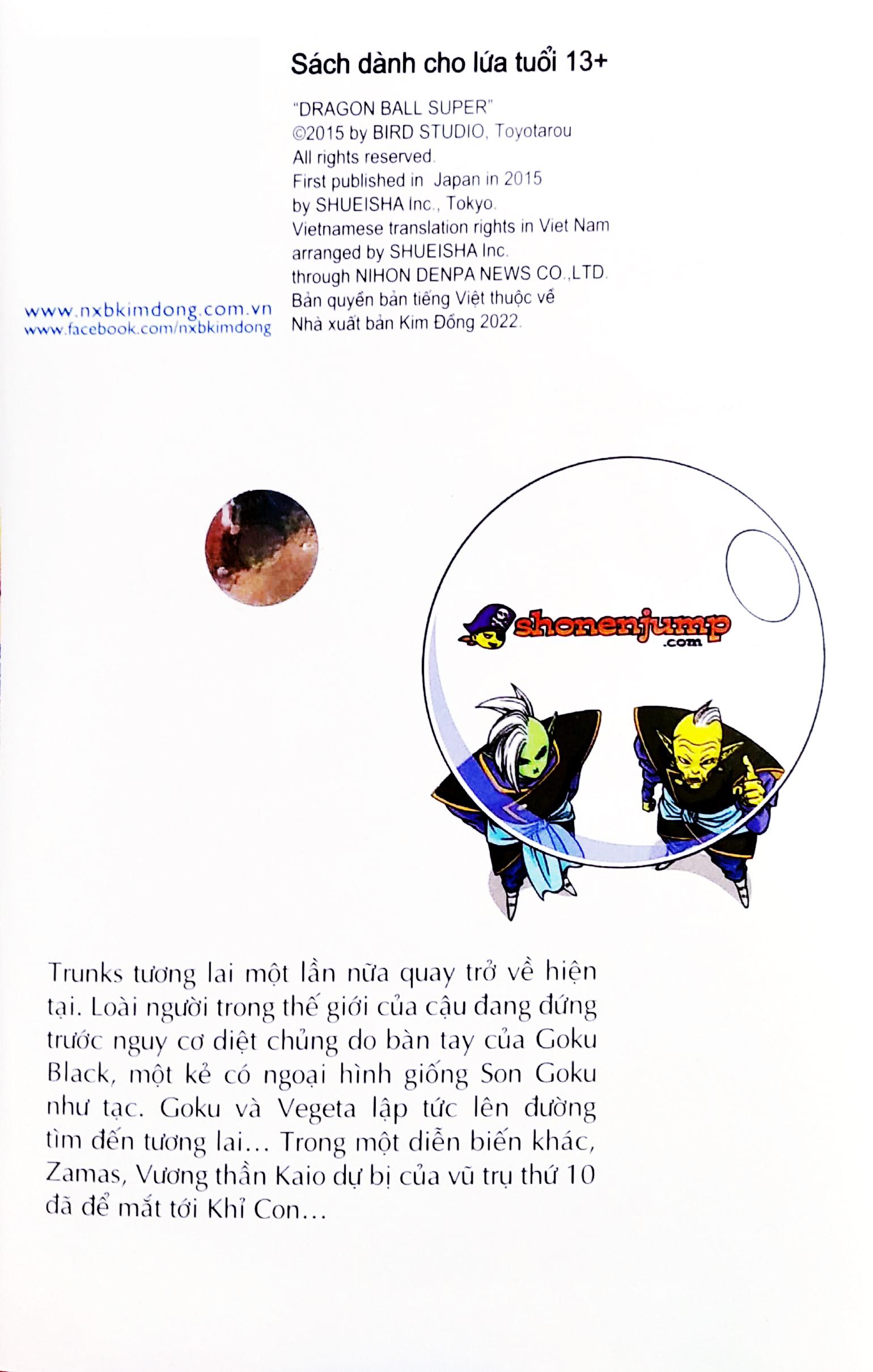 Trunks tương lai một lần nữa quay trở về hiện tại. Loài người trong thế giới của cậu đang đứng trước nguy cơ diệt chủng do bàn tay của Goku Black, một kẻ có ngoại hình giống Son Goku như tạc. Goku và Vegeta lập tức lên đường tìm đến tương lai... Trong một diễn biến khác, Zamas, Vương thần Kaido dự bị của vũ trụ thứ 10 đã để mắt tới Khỉ Con...