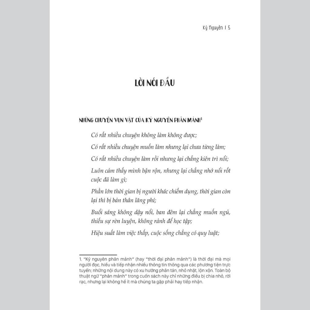 Sách - Dừng Bao Biện! Làm Gì Có Chuyện Bạn Không Có Thời Gian - MCBooks Lưu ý: Chỉ có sách chính hãng mới có thể quét mã QR-code để nhận các bản Audiobooks - Sách nói đi kèm Nội dung cuốn Sách - Dừng Bao Biện! Làm Gì Có Chuyện Bạn Không Có Thời Gian - MCBooks “Không phải người yêu bạn không có thời gian, là họ quan tâm bạn chưa đủ nhiều” cũng giống như bạn: “Không phải bạn không có thời gian, chỉ là bạn biện minh quá nhiều”. Tại sao cùng có 24 giờ như nhau, có người lại hoàn tất mọi công việc, vẫn đủ thảnh thơi. Có người bận rộn cả một ngày vẫn than thở chẳng làm được gì. Nếu bạn đang rơi vào tình trạng trên thì cuốn sách “Dừng bao biện! Làm gì có chuyện bạn không có thời gian” sẽ là cứu tinh cho những cuộc trì hoãn và bao biện. Bao biện là bản chất, nhận ra sự bao biện và vượt qua mới là người thành công. “Không phải người yêu bạn không có thời gian, là họ quan tâm bạn chưa đủ nhiều” cũng giống như bạn: “Không phải bạn không có thời gian, chỉ là bạn biện minh quá nhiều” Tại sao cùng có 24 giờ như nhau, có người lại hoàn tất mọi công việc, vẫn đủ thảnh thơi. Có người bận rộn cả một ngày vẫn than thở chẳng làm được gì:
