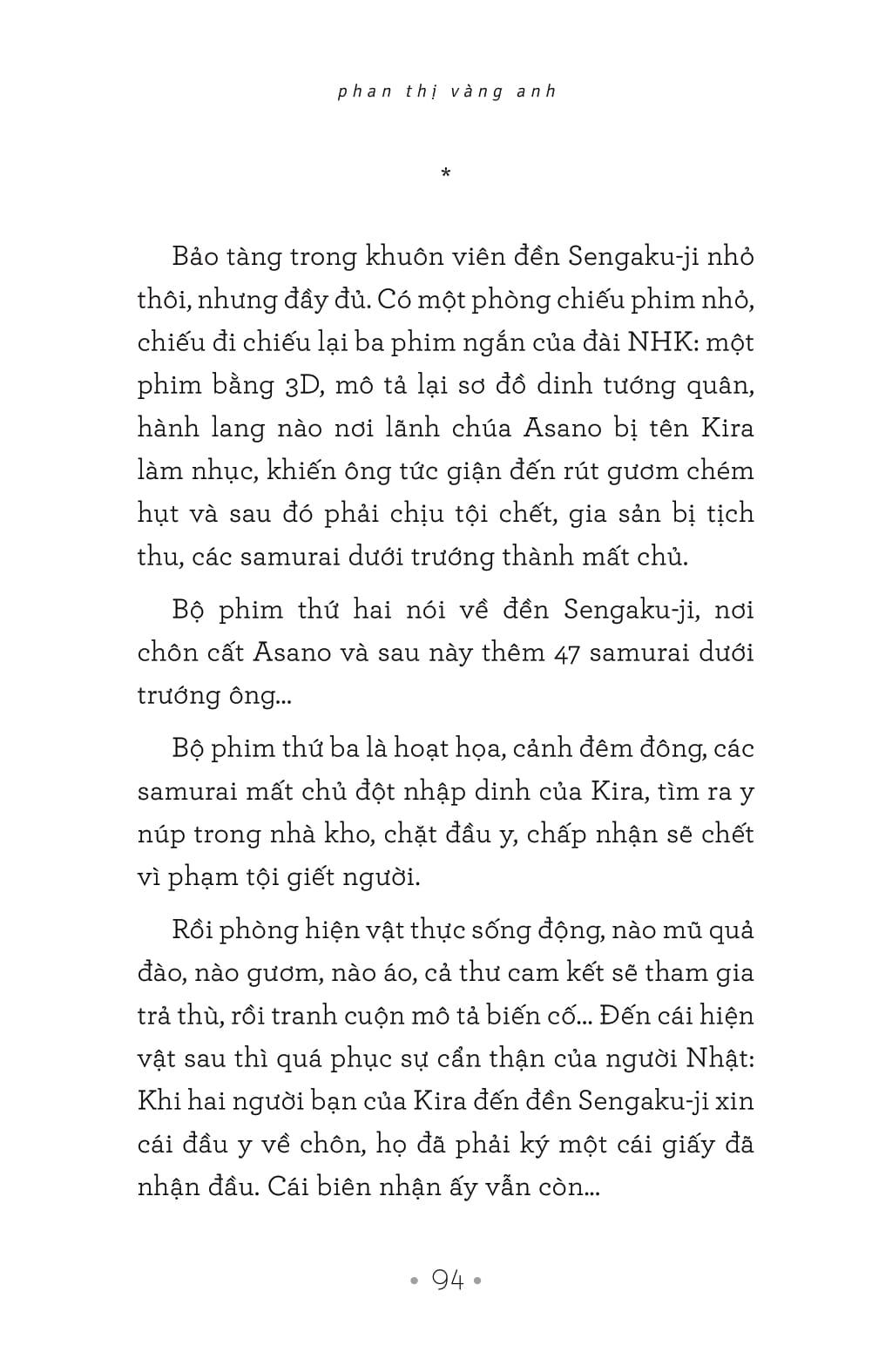 …Khi đã lùi xa khỏi sự kiện, tản văn của Phan Thị Vàng Anh là những bài học về phép ứng xử với cuộc sống, với chữ nghĩa, những thứ xem ra giới viết đã bàn nát nước nhưng làm được như thế lại là một chuyện khác, đòi hỏi không được buông tha sự quyết liệt của chính m.ình. Sự quyết liệt mà đa số chúng ta, sểnh ra là xẹp.”