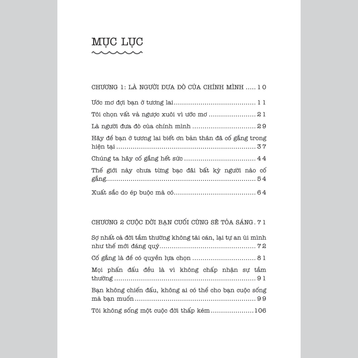 Những người đang có kế hoạch và mục tiêu hành động sẽ nhìn thấy được con đường hay hướng đi của mình một cách rõ ràng hơn. Với những bạn đang ẩn nấp trong cái “vỏ ốc” an toàn của bản thân, cuốn sách hy vọng bạn sẽ tìm thấy động lực để thay đổi và nỗ lực. Thanh xuân quý giá như vậy, bạn lại không nỗ lực trở thành phiên bản hoàn hảo nhất của bản thân, không dám mạo hiểm, không dám nghĩ lớn hơn, thì sau này bạn lấy gì để kể cho con cháu mình nghe đây?