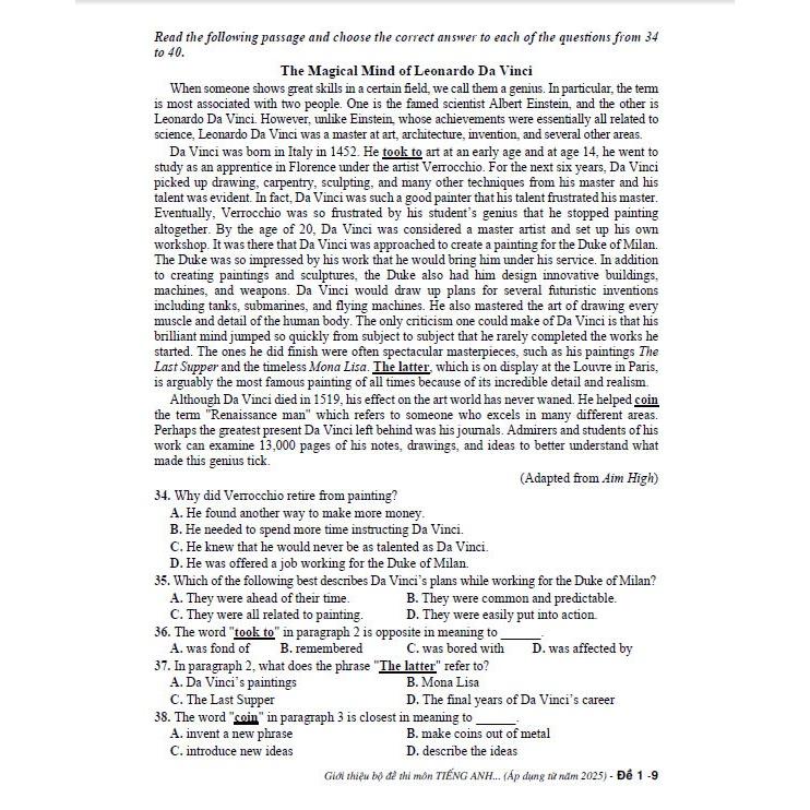 gồm các đề thi dựa trên nội dung Chương trình Giáo dục phổ thông 2018 môn Tiếng Anh.