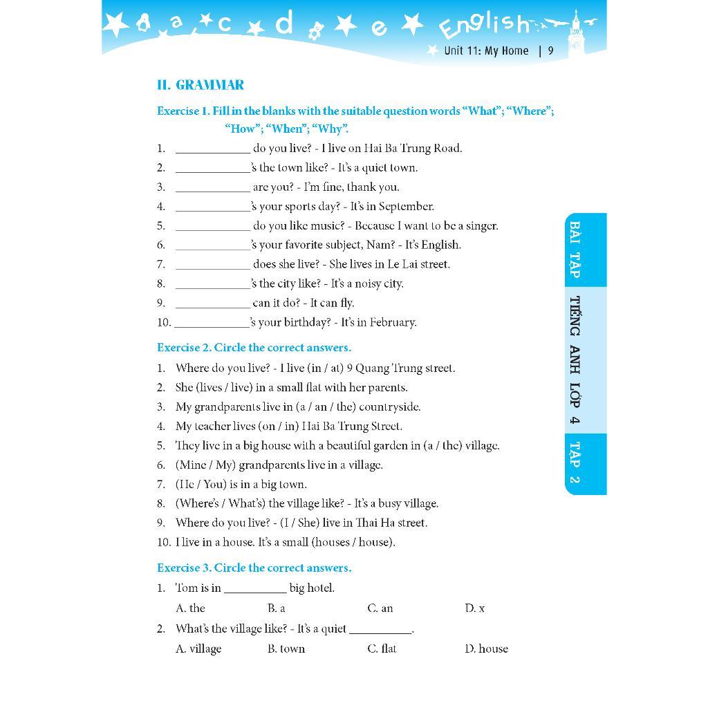 Kính thưa các thầy giáo, cô giáo, các bậc phụ huynh và các em học sinh! Với mong muốn giúp các em học sinh lớp 4 củng cố và mở rộng vốn từ kiến thức trong chương trình Tiếng Anh lớp 4 được chúng tôi biên soạn thành cuốn sách "BÀI TẬP TIẾNG ANH LỚP" với số lượng bài tập đa dạng, phong phú, bám sát ngữ pháp và từ vựng theo chủ điểm của từng đơn vị bài tập.