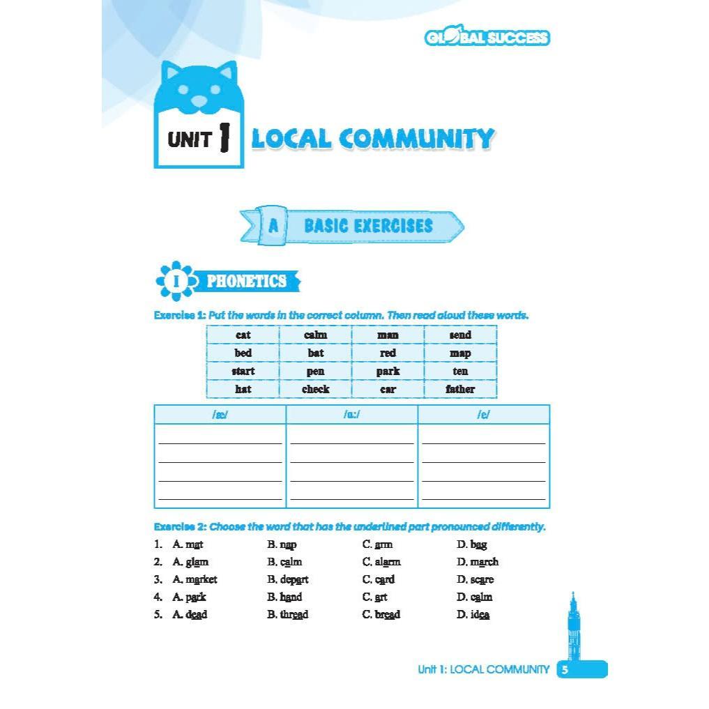 ------------Giới thiệu sách------------ Cuốn sách được biên soạn một cách tỉ mỉ theo chương trình sách giáo khoa Tiếng Anh Global Success và được chia thành hai phần chính: phần bài tập cơ bản và phần bài tập nâng cao. -Phần bài tập cơ bản: được thiết kế để giúp các em củng cố và hiếu sâu hơn về kiến thức tiếng Anh được học trong từng đơn vị bài học trên lớp. Các bài tập ở phần này giúp các em áp dụng những kiến thức đã học vào các tình huống thực tế, từ vựng, ngữ pháp đến rèn luyện các kĩ năng đọc, viết, giao tiếp.