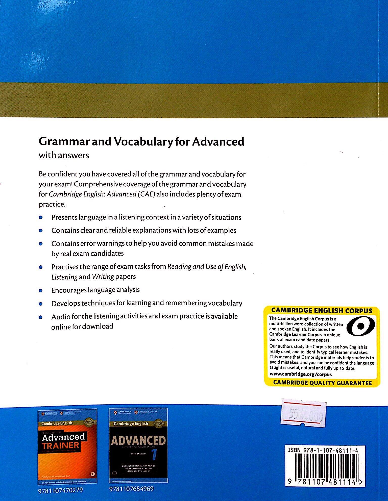 Grammar and Vocabulary reference and practice for the revised Cambridge English: Advanced (CAE) from 2015 Cambridge Grammar for CAE and Proficiency provides complete coverage of the grammar needed for both CAE and Proficiency with plenty