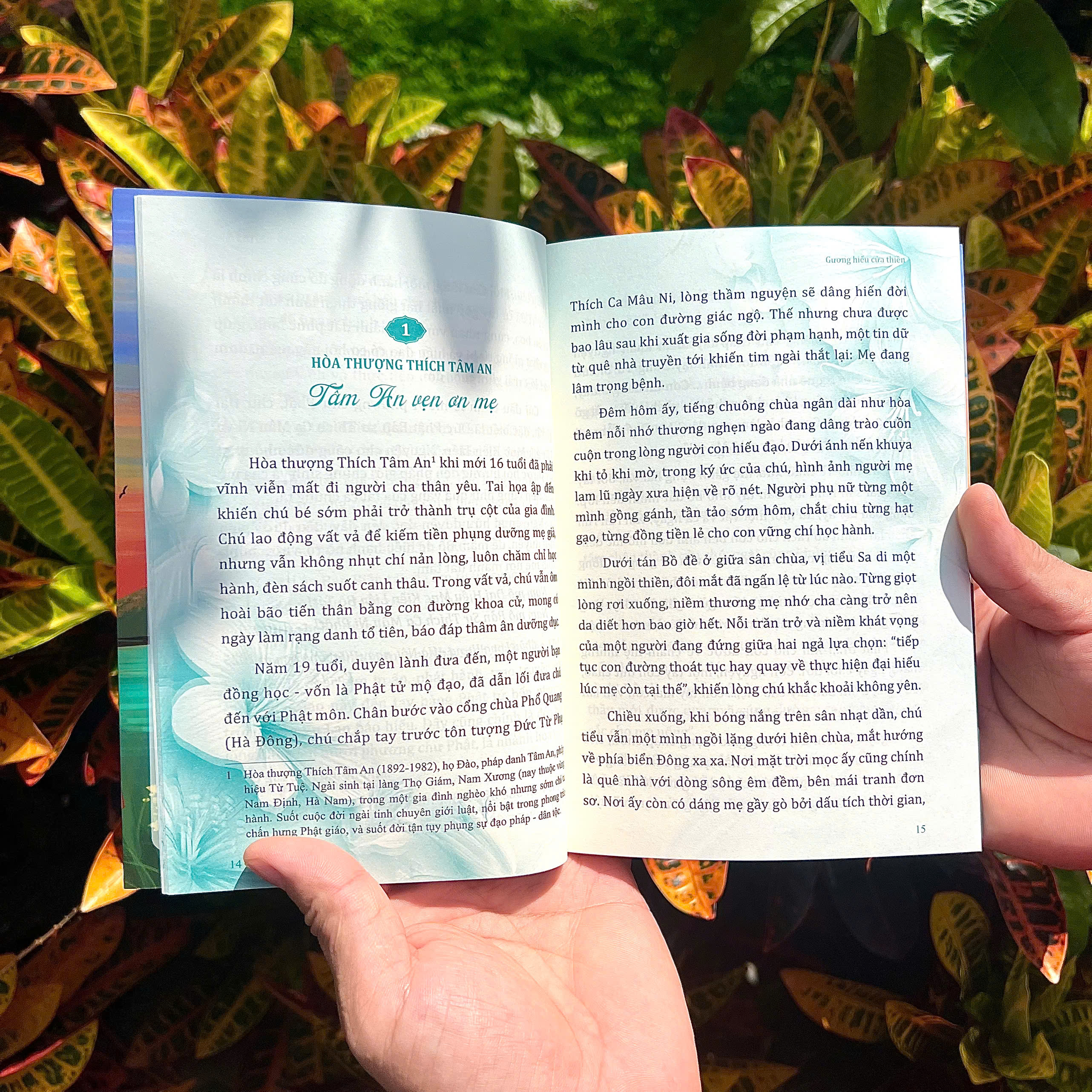 - Gương Hiếu Cửa Thiền là tuyển tập những câu chuyện cảm động về lòng hiếu thảo của người xuất gia trong chốn Thiền môn. Mỗi trang sách đều toát lên ánh sáng từ bi và tinh thần tri ân, giúp người đọc thêm trân trọng cha mẹ, gia đình và mối liên kết thiêng liêng giữa tình thân đạo hiếu.