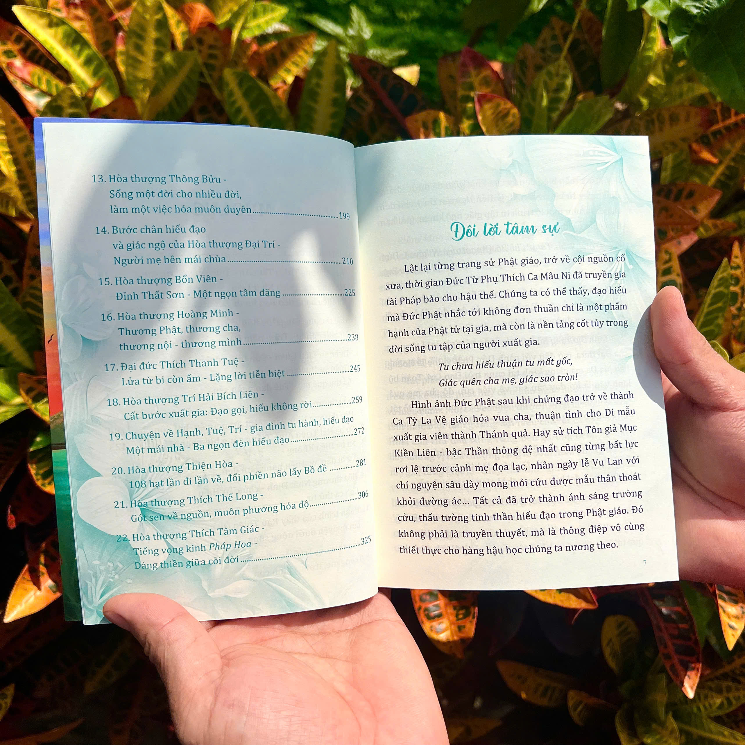 - Đây là cuốn sách về hiếu đạo, sách Phật giáo chữa lành thích hợp cho cả người tu hành và người tại gia. Đọc xong, lòng ta như được gột rửa, trở nên dịu nhẹ và thôi thúc ta quay về với nguồn cội nơi có bóng mẹ hiền luôn dõi theo.