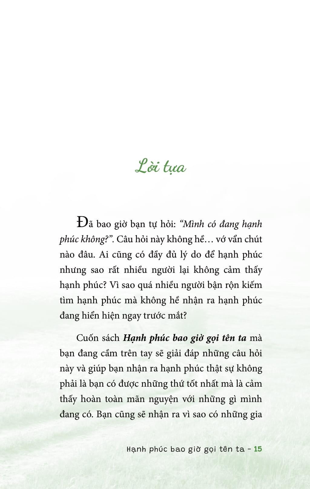 Hạnh Phúc Bao Giờ Gọi Tên Ta Đã bao giờ bạn tự hỏi: “Mình có đang hạnh phúc không?”. Câu hỏi này không hề… vớ vẩn chút nào đâu. Ai cũng có đầy đủ lý