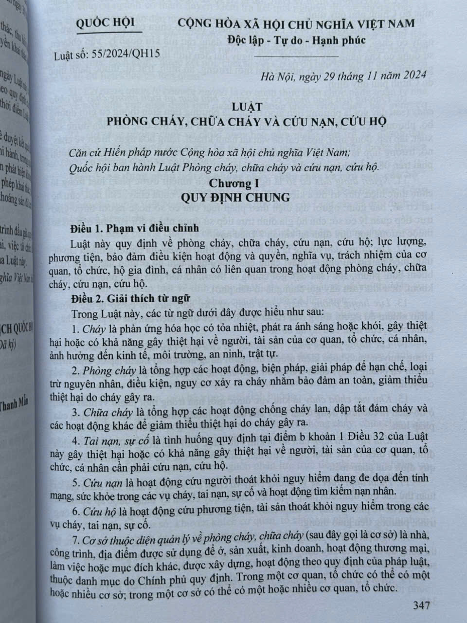 - Luật Phòng cháy, chữa cháy và cứu nạn, cứu hộ;