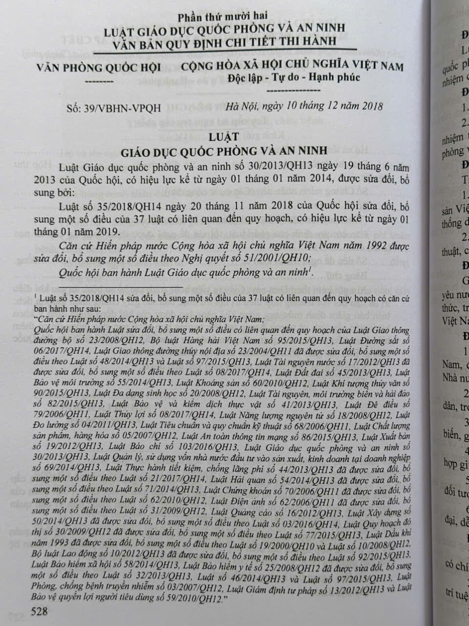 Luật Giáo dục quốc phòng và an ninh năm 2013 (sửa đổi, bổ sung năm 2018, 2025) do Nhà xuất bản Chính trị quốc gia Sự thật phát hành là tài liệu pháp lý quan