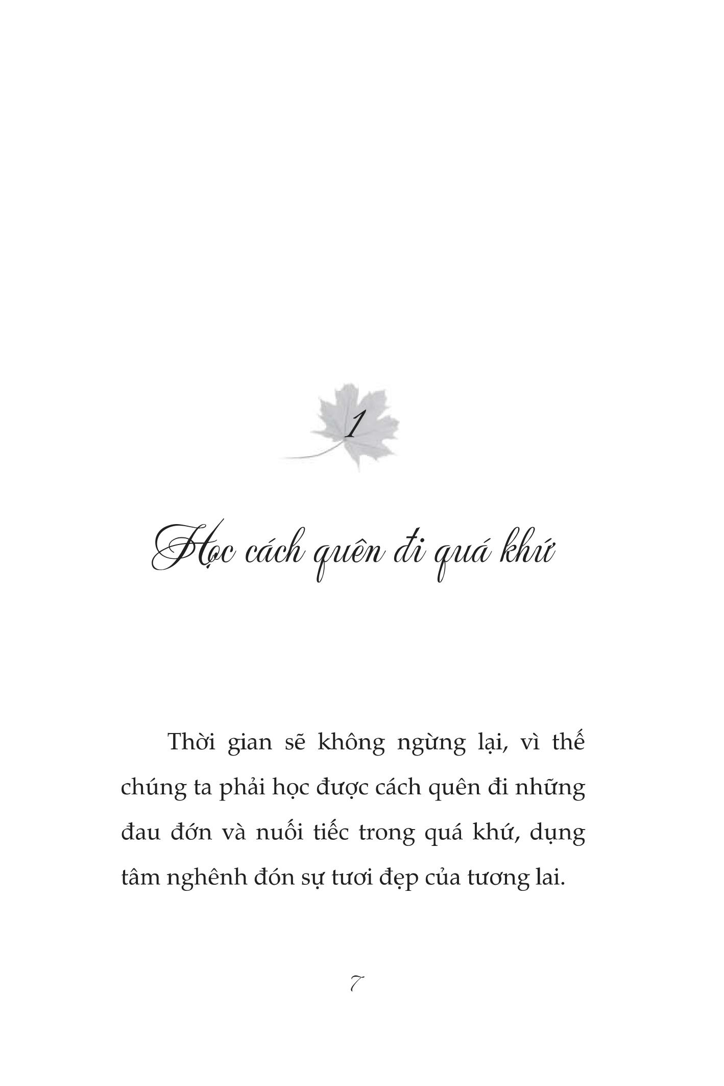Học cách yêu người, học cách yêu thương bản thân để khi quay đầu nhìn lại ta không phải hối tiếc vì bất cứ điều gì, bởi ta đã sống trọn từng phút giây. Lựa chọn người thích hợp, trân trọng người trước mắt đồng thời vun đắp, bồi dưỡng cho tình yêu của bản thân. Khi tình yêu ra đi, hãy mỉm cười để đưa tiễn nó. Học cách yêu người, học cách yêu thương bản thân để khi quay đầu nhìn lại ta không phải hối tiếc vì bất cứ điều gì, bởi ta đã sống trọn từng phút giây.