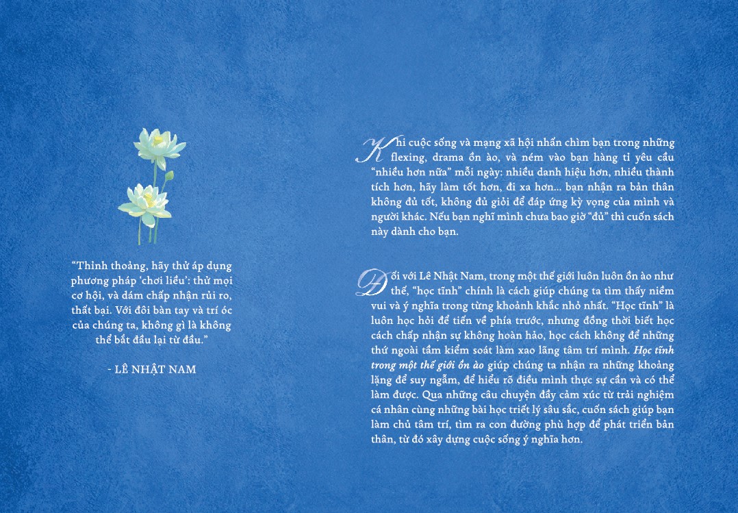 Đối với Lê Nhật Nam, trong một thế giới luôn luôn ồn ào như thể, “học tĩnh” chính là cách giúp chúng ta tìm thấy niềm vui và ý nghĩa trong từng khoảnh khắc nhỏ nhất. “Học tĩnh” là luôn học hỏi để tiến về phía trước, nhưng đồng thời biết học cách chấp nhận sự không hoàn hảo, học cách không để những thứ ngoài tầm kiểm soát làm xao lãng tâm trí mình. Học tĩnh trong một thế giới ổn ào giúp chúng ta nhận ra những khoảng lặng để suy ngẫm, để hiểu rõ điều mình thực sự cần và có thể làm được. Qua những câu chuyện đầy cảm xúc từ trải nghiệm cá nhân cùng những bài học triết lý sâu sắc, cuốn sách giúp bạn làm chủ tâm trí, tìm ra con đường phù hợp để phát triển bản thân, từ đó xây dựng cuộc sống ý nghĩa hơn.