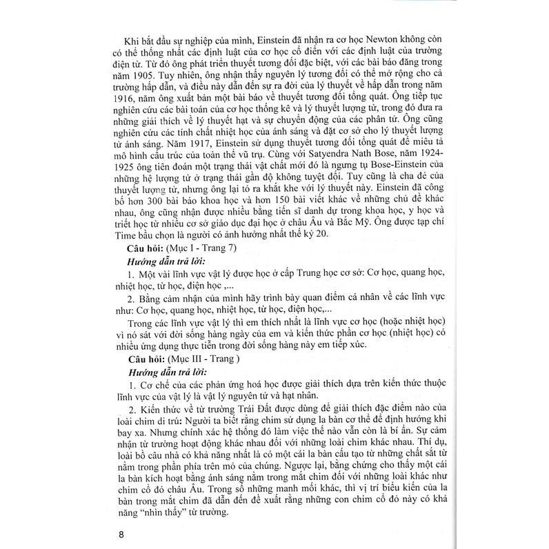 Nội dung của cuốn sách sẽ hệ thống lại kiến thức trọng tâm để học sinh cần ghi nhớ những kiến thức cốt lõi của từng bài học, tiếp đó sẽ hướng dẫn hoặc gợi ý các em trả lời các câu hỏi của bài học, câu hỏi ở phần hoạt động hay câu hỏi trong bài thực hành,... Ngoài ra, trong cuốn sách, để phát huy khả năng tư duy, sáng tạo của học sinh nhóm tác giả đưa thêm các câu hỏi phát triển năng lực nhằm kết nối kiến thức đã được học với thực tiễn trong đời sống, đặc biệt là bồi dưỡng tính hứng thú học tập cho học sinh.