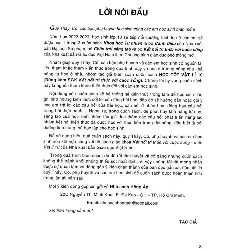 Để sử dụng hiệu quả cuốn sách này, quý Thầy, Cô, phụ huynh và các em học sinh nên kết hợp cùng với bộ sách giáo khoa Kết nối tri thức với cuộc sống - môn Vật lí 10 của Nhà xuất bản Giáo dục Việt Nam.