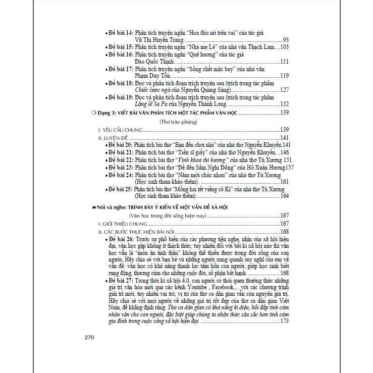 – Phần giới thiệu kiến thức, kĩ năng viết, nói – nghe các dạng bài.