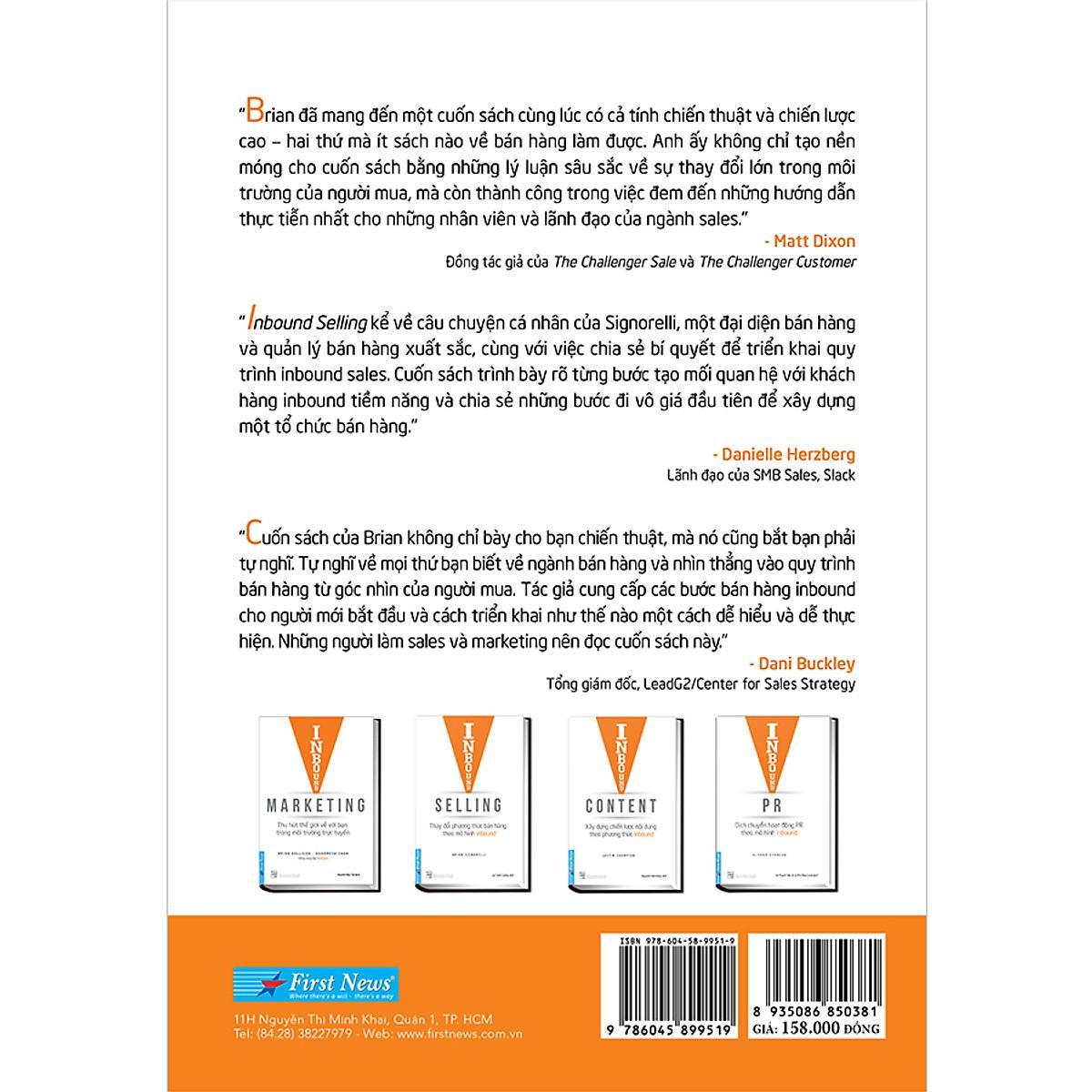 Ngày nay với sự phát triển của ngành digital marketing, lượng khách hàng đến từ môi trường trực tuyến có thể cao hơn rất nhiều lần bộ phận sale trực tiếp hoặc các hoạt động marketing truyền thống.Từ đó, phát sinh rất nhiều sự thay đổi trong quá trình bán hàng: Khách hàng chủ động khám phá và lựa chọn sản phẩm, hoạt động tư vấn bán hàng tốn ít thời gian hơn; các giao dịch diễn ra trên môi trường trực tuyến giảm cho sales rất nhiều khoản phí; việc mua bán trực tuyến tích trữ các nguồn dữ liệu giá trị cho việc cải tiến quy trình sale.Điều này đỏi hỏi người bán hàng và quản lý bán hàng phải có một cách tiếp cận mới trong phương thức bán hàng lẫn đào tạo đội ngũ bán hàng. Bằng kinh nghiệm lâu năm trong ngành bán hàng cũng như những hiểu biết độc đáo của mình, Giám đốc bán hàng của HS – tác giả Brian Signorelli đã hệ thống hóa các bước bán hàng cần thiết, cũng như các xu hướng bán hàng hiện đại từ nhận diện đến kết nối, khám phá, tư vấn và chốt sale với khách hàng, đồng thời tổ chức những đội sale chuyên nghiệ cuốn sách Inbound Selling, độc giả sẽ tìm hiểu:Inbound Selling đã phát triển từ các phương thức và mô hình của Inbound Marketing như thế vào và cách vận dụng Inbound Selling.Cách tiếp cận từng bước để các chuyên gia bán hàng trở thành chuyên gia Inbound ững điều cần thiết với một người quản lý, giám đốc bán hàng với đội ngũ những người bán hàng theo phương thức trò mà các nhà lãnh đạo điều hành cần thực hiện để chuyển đổi áp dụng phương thức Inbound nd Selling phù hợp với những nhà bán hàng trực tuyến, người quản lý bán hàng, giám đốc điều hành và các chuyên gia bán hàng khác. Là mảnh ghép hoàn chỉnh trong mô hình Inbound, Inbound Selling là phương pháp giúp doanh nghiệp của bạn phát triển và gia tăng doanh số trong thời đại công nghệ số.