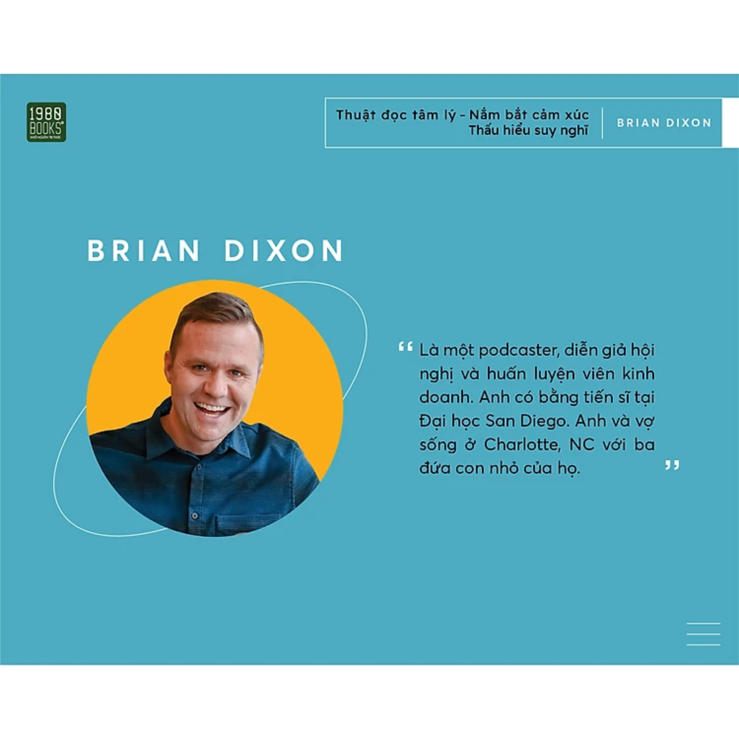 Thuật Đọc Tâm Lý, Nắm Bắt Cảm Xúc, Thấu Hiểu Suy Nghĩ =>> Hãy cùng tác giả Brian khám phá tư duy đặt con người lên hàng đầu, bao gồm:
