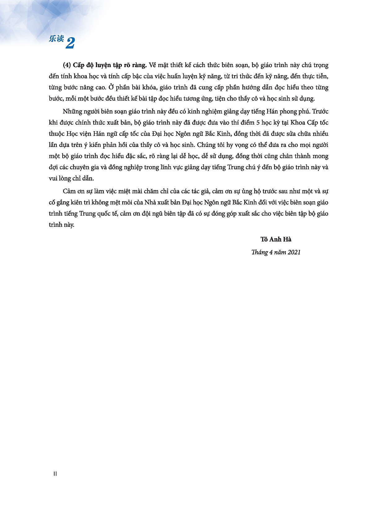 LeDu - Giáo Trình Môn Đọc Hiểu Tiếng Trung - Tập 2 “Le Du - Giáo trình môn Đọc hiểu tiếng Trung, quyển 2” là giáo trình đọc hiểu cấp nhập môn. Mục tiêu giảng