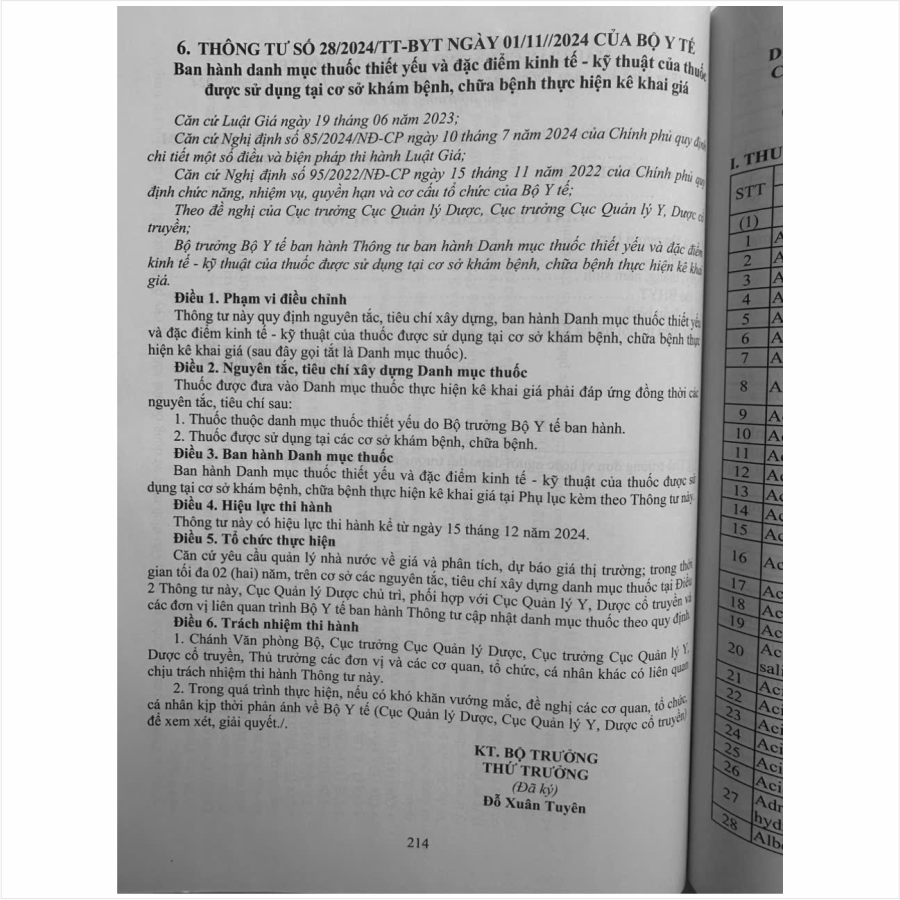 Phần thứ hai. DANH MỤC THUỐC THIẾT YẾU VÀ ĐẶC ĐIỂM KINH TẾ – KỸ THUẬT CỦA THUỐC ĐƯỢC SỬ DỤNG TẠI CƠ SỞ KHÁM BỆNH, CHỮA BỆNH THỰC HIỆN KÊ KHAI GIÁ