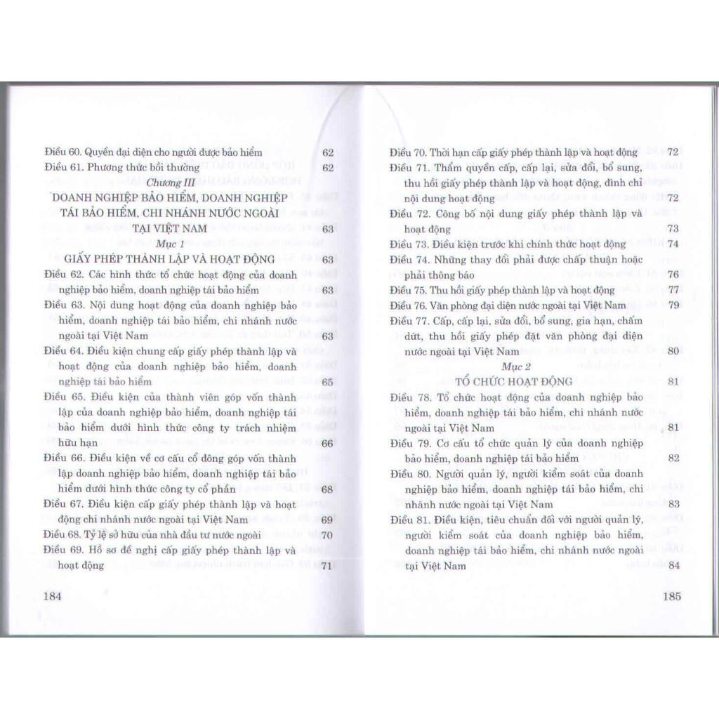 Mua tại TiktokSách - Luật Kinh Doanh Bảo Hiểm Tác giả: Quốc Hội Nhà xuất bản: Chính Trị Quốc Gia Sự Thật Khổ sách: 13x19cm Phát hành: 2022 Công ty phát hành: Nhà sách Tư Pháp Giá bìa: 52.000 đ Số trang: 192 trang Hình thức bìa: Bìa mềm Luật Kinh Doanh Bảo Hiểm số 08/2022/QH15 đã được Quốc Hội thông qua ngày 16 tháng 6 năm 2022 ( Luật này có hiệu lực từ ngày 01 -01 -2023)