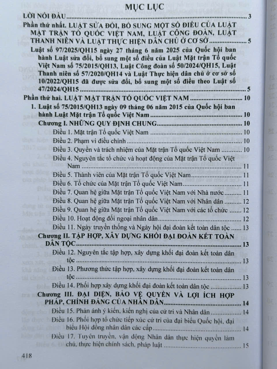 ✨Sách Luật Mặt Trận Tổ Quốc Việt Nam, Luật Công Đoàn, Luật Thanh Niên Và Luật Thực Hiện Dân Chủ Ở Cơ Sở 2025 (V2617T)