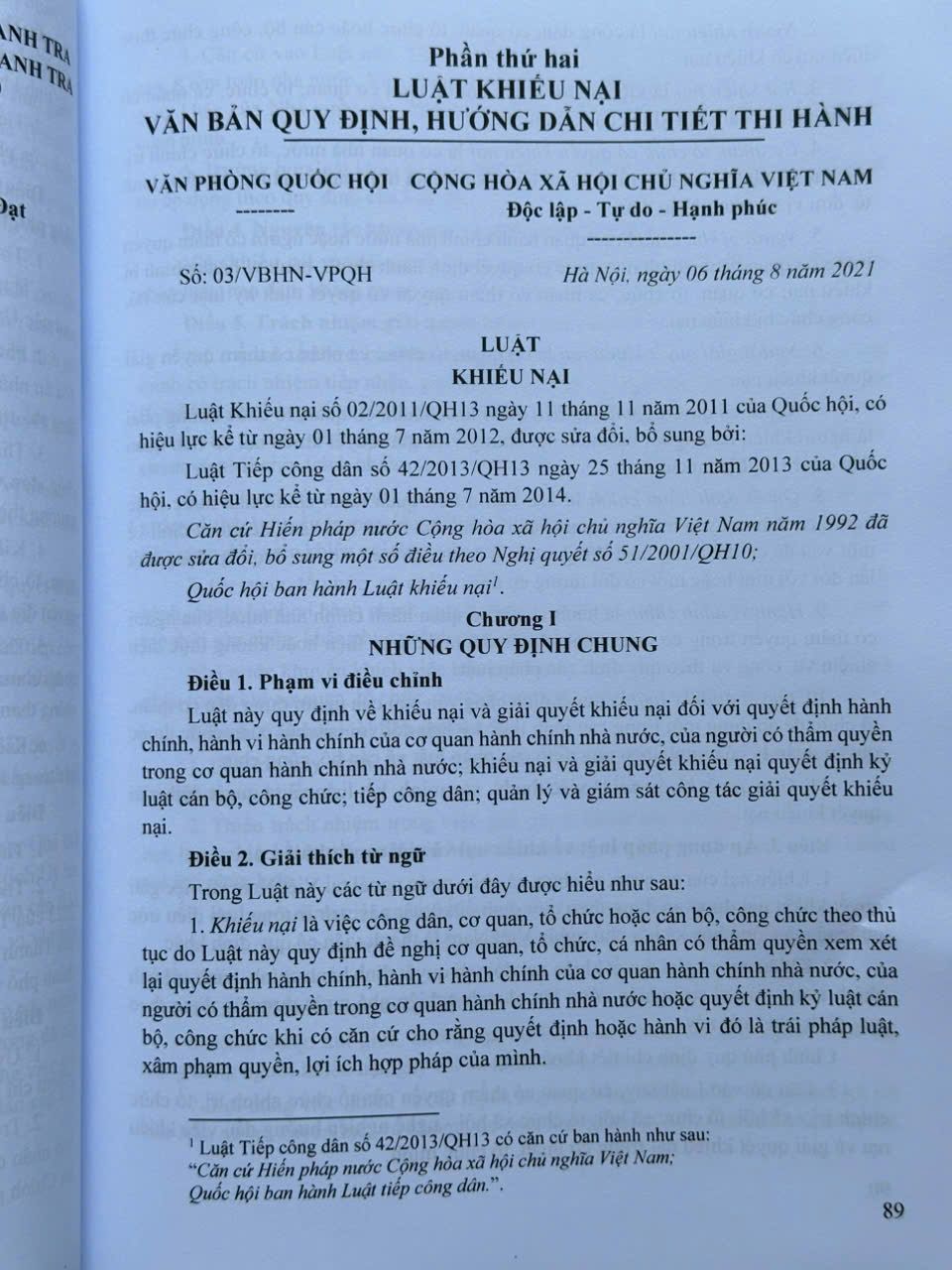 Phần thứ hai. LUẬT KHIẾU NẠI VÀ VĂN BẢN QUY ĐỊNH, HƯỚNG DẪN CHI TIẾT THI HÀNH
