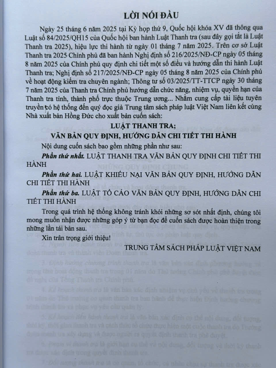Nhằm phổ biến đến Quý Cơ quan, Đơn vị và Quý khách hàng thân thiết nắm bắt kịp thời những quy định mới nêu trên. Nhà sách Nam Việt xin trân trọng giới thiệu cuốn sách: LUẬT THANH TRA 2025 – VĂN BẢN QUY ĐỊNH, HƯỚNG DẪN CHI TIẾT THI HÀNH