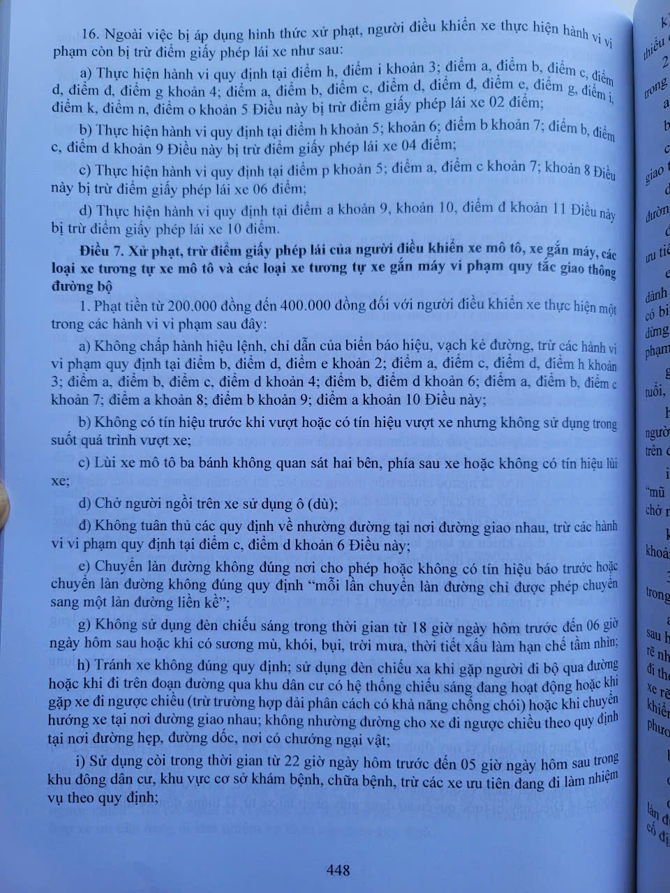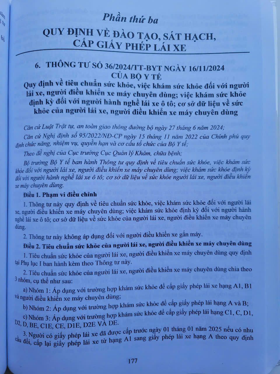 - Toàn bộ sách bìa mềm khổ lớn 20 x 28 cm phân phối bởi Nhà sách Nam Việt đều được bọc sách Plastic MIỄN PHÍ và xuất hóa đơn điện tử đầy đủ, nhanh chóng. ...//… Lời giới thiệu: Luật Trật tự, an toàn giao thông đường bộ số 36/2024/QH15 được Quốc hội thông qua ngày 27/6/2024, có hiệu lực thi hành từ ngày 01/01/2025 với nhiều điểm mới như: thay đổi phân hạng giấy phép lái xe; tăng độ tuổi tối đa của người lái xe; bổ sung quy định trừ điểm giấy phép lái xe; từ 01/01/2026, không được cho trẻ em dưới 10 tuổi và chiều cao dưới 1,35m ngồi cùng hàng ghế tài xế... Để triển khai Luật kịp thời, thống nhất, hiệu lực, hiệu quả, Chính phủ và các Bộ ngành cũng đã ban hành nhiều văn bản hướng dẫn Luật như Nghị định số 151/2024/NĐ-CP ngày 15/11/2024 Quy định chi tiết một số điều và biện pháp thi hành Luật Trật tự, an toàn giao thông đường bộ; Thông tư số 73/2024/TT-BCA ngày 15/11/2024 Quy định công tác tuần tra, kiểm soát, xử lý vi phạm pháp luật về trật tự, an toàn giao thông đường bộ của cảnh sát giao thông; Nghị định số 168/2024/NĐ-CP ngày 26/12/2024 Quy định xử phạt vi phạm hành chính về trật tự, an toàn giao thông trong lĩnh vực giao thông đường bộ; trừ điểm, phục hồi điểm giấy phép lái xe... Nhằm góp phần phổ biến những quy định pháp luật về giao thông đường bộ cho các cơ quan ban ngành, cá nhân trong và ngoài nước, Nhà sách Nam Việt xin trân trọng giới thiệu cuốn sách: Luật Trật Tự, An Toàn Giao Thông Đường Bộ Và Văn Bản Hướng Dẫn Quy Trình Tuần Tra, Xử Lý Vi Phạm Về Trật Tự, An Toàn Giao Thông Đường Bộ, Đào Tạo, Sát Hạch, Cấp Giấy Phép Lái Xe …//… Nội dung cuốn sách gồm 4 phần sau: Phần thứ nhất. Luật trật tự, an toàn giao thông đường bộ và nghị định hướng dẫn thi hành Phần thứ hai. Quy định công tác tuần tra, kiểm soát, xử lý vi phạm pháp luật về trật tự, an toàn giao thông đường bộ Phần thứ ba. Quy định về đào tạo, sát hạch, cấp giấy phép lái xe Phần thứ tư. Quy định về xử phạt vi phạm hành chính trong lĩnh vực giao thông đường bộ *** Quý khách hàng hãy an tâm khi mua sách tại Nhà sách Nam Việt, cam kết uy tín, chất lượng, sách bản gốc chuẩn đẹp, được kiểm hàng, hài lòng mới thanh toán, sách đã được bọc plastic cao cấp miễn phí! …//… Cảm ơn các bạn đã ghé thăm shop Nhà sách Nam Việt ! Sách Luật Trật Tự, An Toàn Giao Thông Đường Bộ Và Văn Bản Hướng Dẫn Quy Trình Tuần Tra, Xử Lý Vi Phạm Về Trật Tự, An Toàn Giao Thông Đường Bộ, Đào Tạo, Sát Hạch, Cấp Giấy Phép Lái Xe Sách Luật Trật Tự, An Toàn Giao Thông Đường Bộ Và Văn Bản Hướng Dẫn Quy Trình Tuần Tra, Xử Lý Vi Phạm Về Trật Tự, An Toàn Giao Thông Đường Bộ, Đào Tạo, Sát Hạch, Cấp Giấy Phép Lái Xe