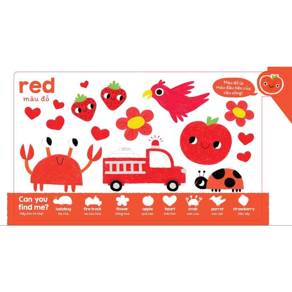 Cuốn sách có chủ đề về màu sắc và các loài động vật, trái cây, rau củ đơn giản trong tiếng anh. Các bé sẽ vừa phát triển khả năng sáng tạo khi học về màu sắc, vừa có thể phát triển tư duy quan sát qua từng trang sách. Màu sắc tương phản, bắt mắt, rất phù hợp để bé phân biệt, nhận biết màu sắc.
