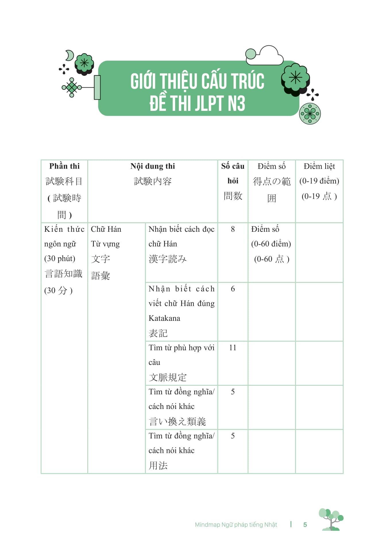 - Luyện tập qua các bài thi đánh giá năng lực về ngữ pháp, học cùng kỹ năng giao tiếp. Mind Map Ngữ Pháp Tiếng Nhật Trung Cấp là cuốn sách không thể bỏ qua đối với các bạn đang có mục đích học tiếng Nhật trung cấp hoặc có ý định thi lấy chứng chỉ JLPT N3. Phương pháp học Ngữ pháp tiếng Nhật bằng sơ đồ tư duy Ngữ pháp là một trong những yếu tố tiên quyết để hoàn thiện đầy đủ kỹ năng của tiếng Nhật. Vì vậy, việc nắm rõ, biết cách ứng dụng và ghi nhớ ngữ pháp là việc rất quan trọng. Điều này đặc biệt quan trọng với những bạn có mục tiêu lấy chứng chỉ tiếng Nhật nói chung và các bạn chuẩn bị tham gia kỳ thi năng lực trình độ trung cấp nói riêng. Nếu bạn đang gặp khó khăn trong việc tiếp thu và ghi nhớ kiến thức bằng cách học liệt kê, thì phương pháp sơ đồ tư duy (Mind Map) là giải pháp thay thế hiệu quả, giúp bạn hệ thống lại và ghi nhớ lâu các dạng cấu trúc ngữ pháp theo từng chủ điểm, tạo ra sự liên kết các cấu trúc theo từng dạng. Qua đó, các bạn dễ dàng và nhanh chóng làm chủ được những kiến thức cần thiết. Không chỉ dừng lại ở kiến thức bài vở trên đề thi mà cuốn sách này còn giúp bạn có thể học cách giao tiếp với người Nhật Bản một cách tự nhiên và hiệu quả. Nội dung của cuốn sách Mind Map Ngữ Pháp Tiếng Nhật – Học Ngữ Pháp Tiếng Nhật Qua Sơ Đồ Tư Duy dành cho Trình độ Trung Cấp: Phần 1 – Tổng hợp ngữ pháp JLPT trình độ Trung Cấp N3: trợ từ và phó từ tiếng Nhật Phần 2 – Các chủ điểm ngữ pháp trình độ Trung Cấp: 27 chủ điểm ngữ pháp với mỗi chủ điểm là nội dung bài học bao gồm: